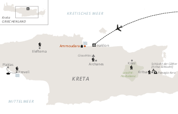 <Heute treten wir voller Vorfreude den Flug nach Kreta an. Am Flughafen werden wir von einem ASI-Vertreter herzlich empfangen und in unser Hotel gefahren. Dort können wir in aller Ruhe ankommen, die Koffer auspacken und die ersten Eindrücke der Insel genießen.