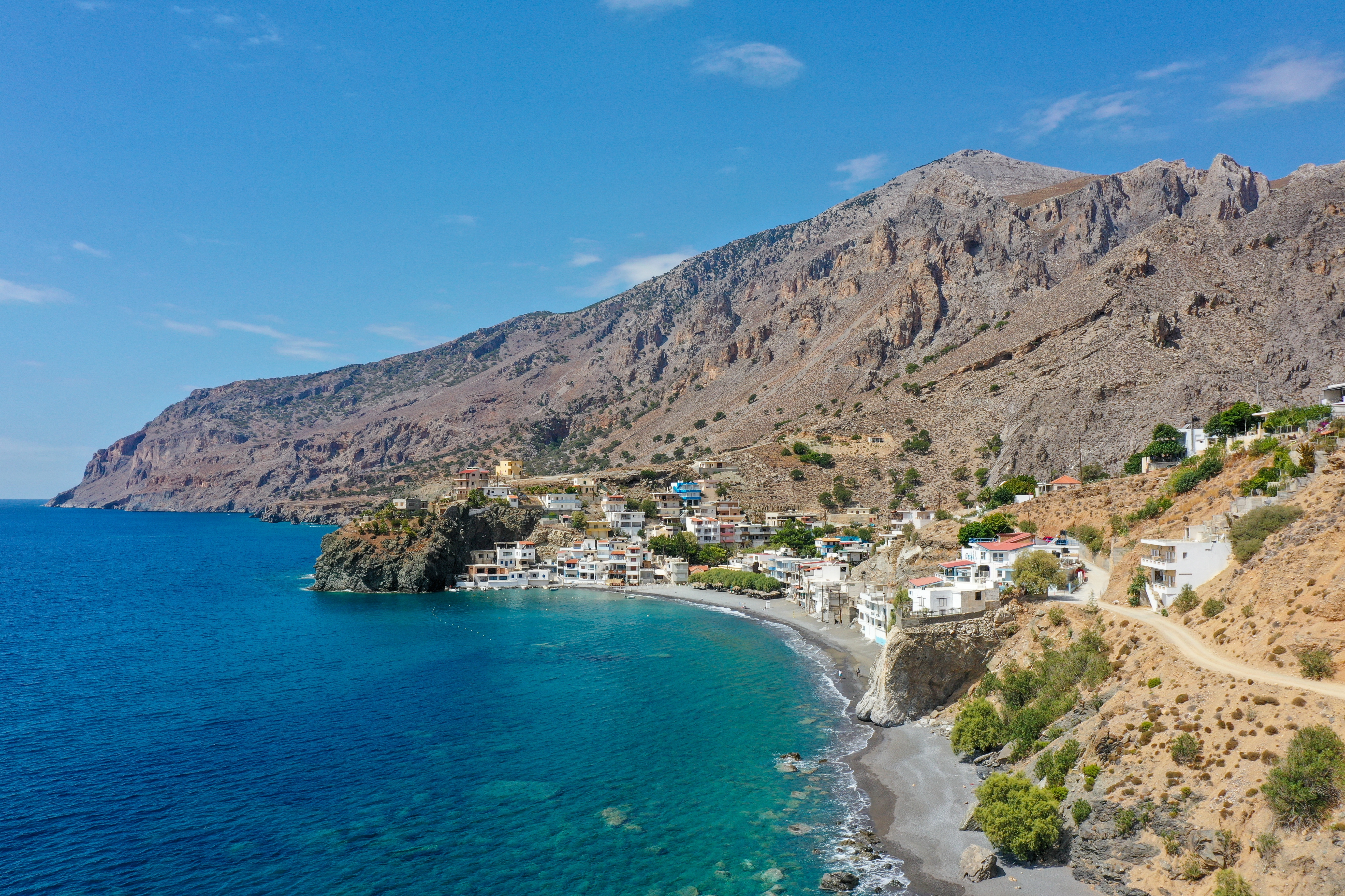 <Nach einer Erklärung der Funktion der E-Bikes radeln wir 1 km bis zu einem Café, wo wir täglich gemeinsam frühstücken. Am ersten Tag geht es Richtung Süden und die Strecke ist abwechslungsreich und führt uns durch die fruchtbarste Gegend Kretas, die Messara-Ebene. Wir überqueren das Asteroussia-Gebirge, erreichen Kalamaki und gelangen an einen der längsten Strände Kretas. Hier genießen wir direkt am Meer die kulinarischen Köstlichkeiten der Taverne Aristodimos.