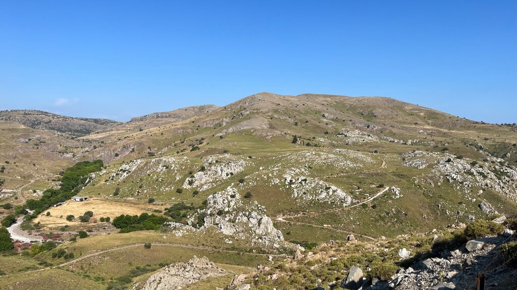 <Heute geht es zum höchsten Berg der Insel – Lepetymnos auf 968 m. Von oben hat man einen großartigen Blick über Lesbos. An diesem Tag erwandern Sie auch noch weitere Gipfel wie den Vigla und Profitis Ilias. Nehmen Sie unbedingt die Kamera heute mit, es erwarten Sie spektakuläre Aussichten. Mittagessen in Pelopi.