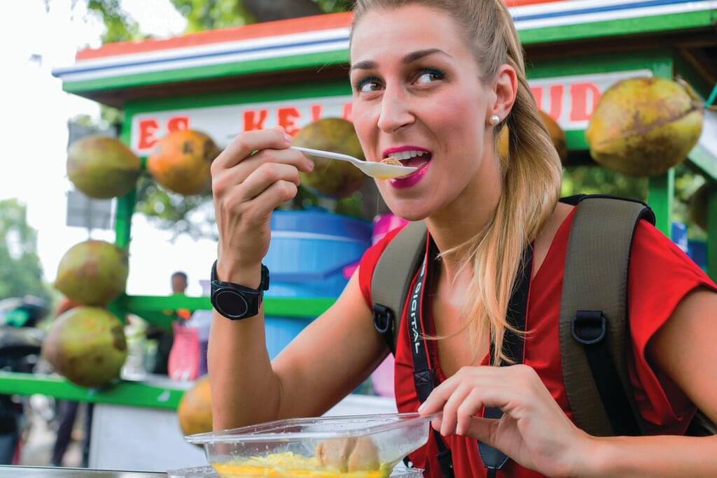 <Heute Morgen nimmst du den Zug nach Bandung - eine ehemalige niederländische Stadt, die heute eine blühende Kunst-, Shopping- und Café-Szene hat. Wenn du um die Mittagszeit ankommst, kannst du dich auf dem Paskal Food Market durch die Straßen schlemmen. Vielleicht probierst du Satay-Spieße, Gado-Gado (ein traditioneller indonesischer Salat aus gekochten Eiern und Gemüse) oder gebratenes Huhn mit Reis und Gemüse. Danach kannst du den vollen Bauch mit einem Spaziergang durch die Braga Street loswerden. Diese Straße war einst das Zentrum der lokalen Entwicklung und beherbergte die erste Einkaufspassage in Bandung mit vielen Art-Deco-Gebäuden, Geschäften und einem Kino. Setz dich auf eine Tasse Kaffee (in einem der beliebten Lokale) und beobachte, wie die Welt vorbeizieht.