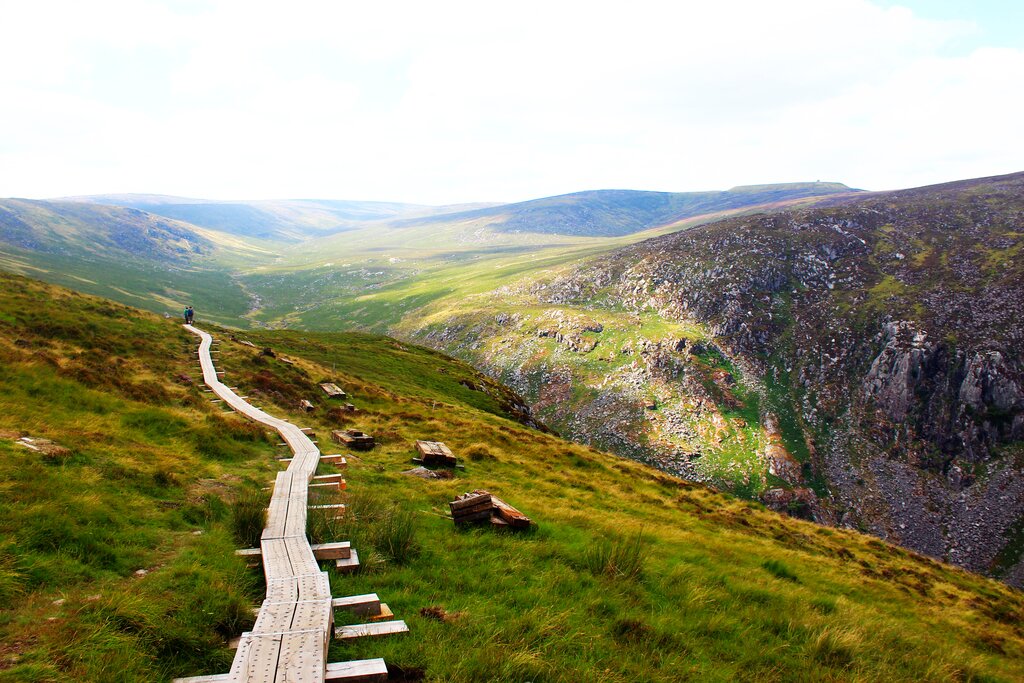 <Nach dem Frühstück treffen wir uns um 08.45 Uhr mit unserem ASI-Wanderführer zur Begrüßung und zum Kennenlernen. Bitte für das Treffen bereits in Wanderbekleidung erscheinen. Auf dem berühmten Wicklow Way beginnen wir bei Roundwood die dritte Etappe des Weitwanderwegs und wandern durch das Herz des Hochlands. Sanfte Hügel, weite Moore und historische Spuren säumen unseren Weg. Ziel ist Glendalough, eine im 6. Jahrhundert gegründete Klosteranlage im „Tal der zwei Seen“, umrahmt von steilen, bewaldeten Hängen.