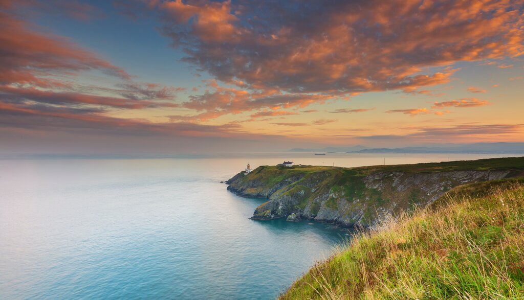 <Heute fahren wir in den malerischen Fischerort Howth, der geschützt am Fuße einer eindrucksvollen Felshalbinsel liegt. Von hier wandern wir auf einem gut ausgebauten Klippenpfad entlang der Küste. An der „Nase“ von Howth Head eröffnet sich uns ein weiter Blick über die Dubliner Bucht bis zu den Inseln „Ireland’s Eye“ und „Lambay Island“. Durch duftendes Heidekraut und leuchtenden Ginster führt uns der Weg zum Baily Leuchtturm, der spektakulär auf einem Felsvorsprung thront – ein perfekter Fotospot.