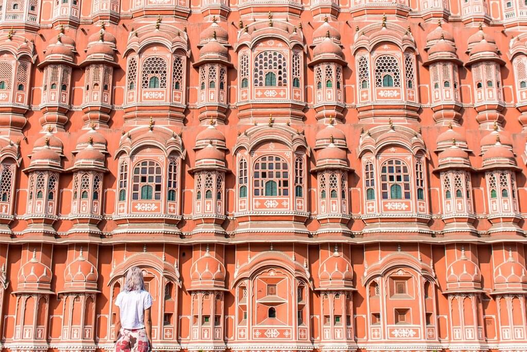 <Heute Morgen fährst du nach Jaipur - eine Stadt, die von einer erdigen roten Mauer im Stil der Sandsteinstädte der Moguln umgeben ist. Nach deiner Ankunft steht dir der Tag zur freien Verfügung. Du kannst durch die Straßen der Pink City spazieren, die von Kamelen, Motorrädern, Rikschas und traditionell gekleideten Rajputen bevölkert werden, während Affen über den Köpfen klettern, um sich mit dir vertraut zu machen. Vielleicht besuchst du auch den Stadtpalast, der einst der Sitz des Maharadschas war. Der Palast ist ein beeindruckender Komplex mit farbenfrohen Hoftoren, faszinierenden Museen und Wächtern mit Schnurrbärten, die fast so beeindruckend sind wie das Gebäude selbst. Der Palast ist auch nach dem Zusammenschluss des Königreichs Jaipur mit der Indischen Union im Jahr 1949 noch immer eine königliche Residenz. Oder sieh dir das Jantar Mantar aus dem 18. Jahrhundert an - ein Observatorium mit Instrumenten zur Beobachtung der Sterne - die Kinder werden es lieben! Am Nachmittag kannst du das fünfstöckige Hawa Mahal, den Palast der Winde, mit seiner detaillierten, wabenförmigen Fassade besuchen. Die beeindruckende Aussicht macht ihn nach dem Taj Mahal zum meistfotografierten Gebäude des Landes.