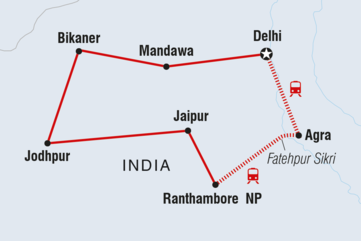 <Namaste! Willkommen in Indien. Dein Abenteuer beginnt in einer der ältesten Städte der Welt - Delhi. Um 13 Uhr findet in deinem Hotel ein Willkommenstreffen statt, bei dem du deinen Reiseleiter und die anderen Familien kennenlernst. Wenn du früh ankommst, ist Indiens Hauptstadt voll mit historischen Stätten, Museen, Galerien, Geschäften und endlosen Basaren. Nach dem Treffen macht ihr eine geführte Sightseeing-Tour, um die Gegensätze von Alt- und Neu-Delhi zu erkunden. In den engen Gassen von Alt-Delhi wetteifert alles um den Platz - zwänge dich auf dem Weg zur Jama Masjid durch die Festungsmauern der alten Stadt. Diese Moschee, die die Skyline der Stadt dominiert, ist sowohl ein soziales Zentrum als auch ein Ort der Anbetung. Erkunde die pulsierenden Straßen, die auf dem Weg zum farbenprächtigen Roten Fort voll mit Bussen, Lastwagen, Menschen und Kühen sind. Anschließend lässt du die Menschenmassen hinter dir und atmest im kontrastreichen Neu-Delhi auf - mit breiten, von Bäumen gesäumten Alleen und ehemaligen Denkmälern der britischen Macht besuchst du alle wichtigen Sehenswürdigkeiten - das Parlamentsgebäude, das Präsidentenhaus und das India Gate - bevor du für die Nacht in dein Hotel zurückkehrst.