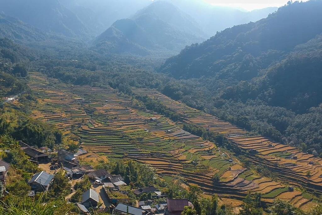 <Heute Morgen nach dem Frühstück wirst du mit einem privaten Transfer zum Flughafen gebracht und fliegst nach Dimapur. Nach deiner Ankunft hast du etwas Zeit zum Mittagessen, bevor du nach Kohima - der Hauptstadt von Nagaland - fährst und dir unterwegs die Beine vertreten kannst. Du kommst am späten Nachmittag an und hast den Abend zur freien Verfügung, um dich in deiner Unterkunft zu entspannen oder einen Spaziergang durch die bunten Häuser der Stadt zu machen, um dich zu orientieren.
