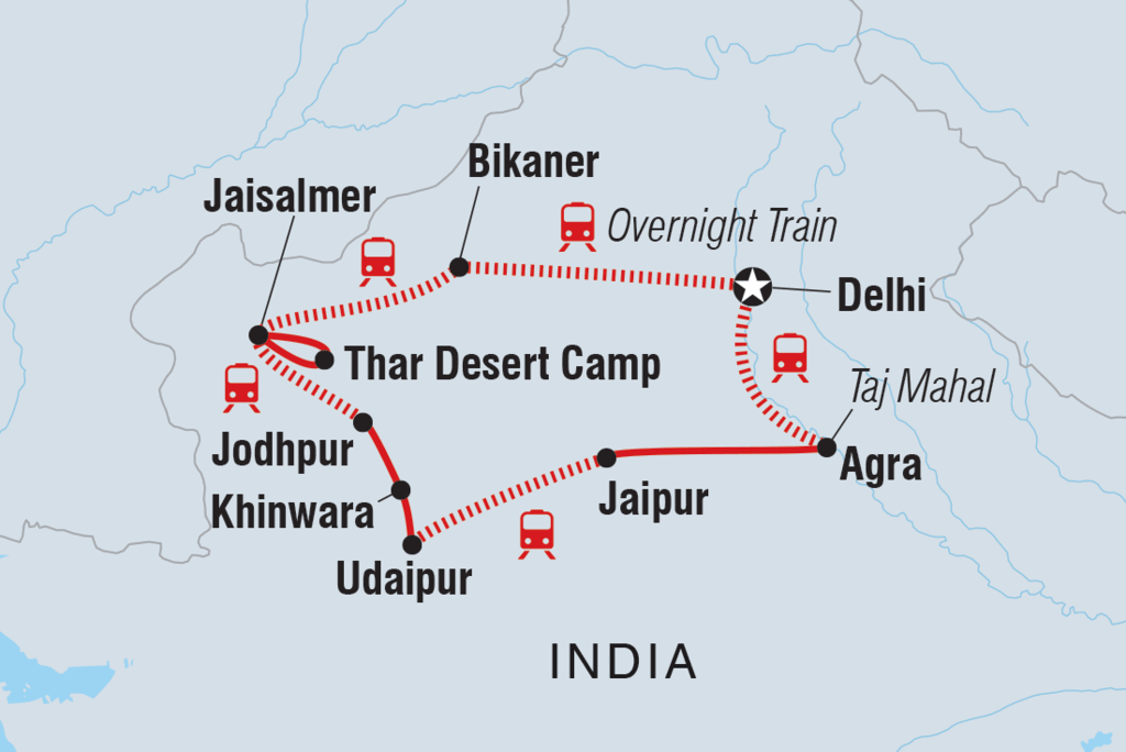 Wenn du auf der Suche nach einem authentischen Stück des echten Rajasthan bist, ist dieses epische 16-tägige Abenteuer durch Indien alles, was du dir wünschen kannst. Zelte unter dem Sternenhimmel zwischen Wüstensanddünen, erkunde die Märkte von Jodhpur, lerne bei einem Kochkurs in Bikaner, wie du deine neuen Lieblingsgerichte zubereitest, durchquere die Tempel von Jaipur und beobachte das Taj Mahal im Morgenlicht - du kannst dieses Weltwunder von deiner Bucket List abhaken! Mit all dem und mehr wird Indien definitiv alle Erwartungen übertreffen. Mach dich bereit für leckeres Essen, chaotische Straßen und genug Sinneseindrücke für ein ganzes Leben.