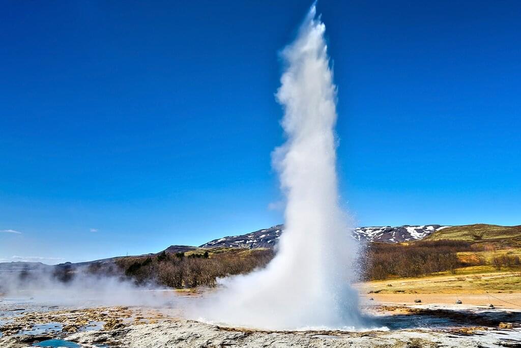 <Heute Morgen fährst du zum geologisch und historisch bedeutenden Thingvellir-Nationalpark. Auf den ersten Blick scheint der Nationalpark nur ein Naturwunder zu sein, aber dein Reiseleiter wird dir den historischen Kontext erklären und dir verraten, dass sich hier ab 930 n. Chr. das alte isländische Parlament befand. Besuche die sprudelnden heißen Quellen von Geysir und Strokkur, bevor du zum spektakulären Gullfoss fährst - dem größten Wasserfall Islands. Am Nachmittag kannst du vielleicht die Geheime Lagune besuchen - ein natürliches geothermisches Becken, das von den heißen Quellen in der Nähe erwärmt wird. Der Abend ist eine gute Gelegenheit, den Kopf in den Himmel zu richten und nach den Nordlichtern Ausschau zu halten.