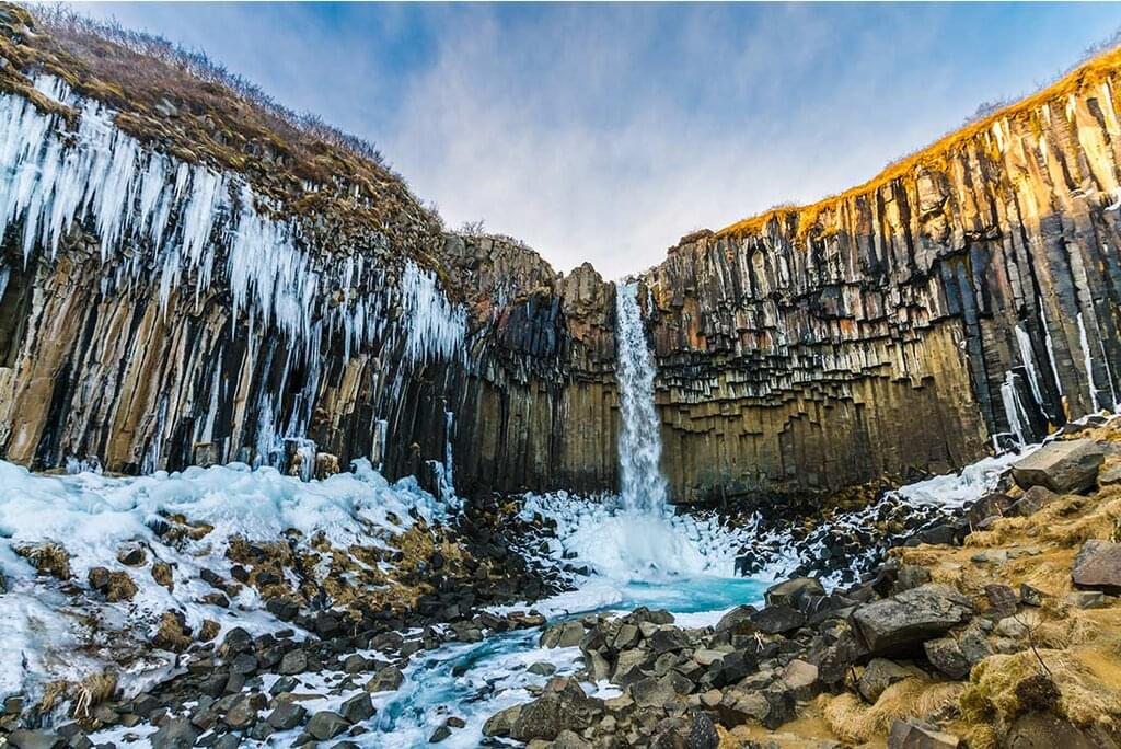 <Beginne den Tag mit einem Besuch in Jokulsarlon, auch bekannt als Gletscherlagune, wo Eisberge über den Gletschersee treiben. Bei einem Spaziergang entlang des Ufers erfährst du mehr über die Entstehung der Lagune und ihre Verbindung zu den umliegenden Gletschern. Weiter geht es zum Sólheimajökull, einem Auslassgletscher der mächtigen Eiskappe des Mýrdalsjökull, wo du einen Blick auf die sich ständig verändernde Welt des Eises werfen kannst. Als Nächstes besuchst du den mächtigen Skógafoss-Wasserfall - mit 60 Metern Höhe und 25 Metern Breite ist er einer der größten und bekanntesten Wasserfälle in Island. Dein Reiseleiter wird dir erklären, wie diese Naturwunder im Laufe der Zeit entstanden sind. Anschließend kehrst du nach Reykjavik zurück und hast einen freien Abend. Vielleicht gehst du zum Alten Hafen, um die berühmte Hummersuppe zu probieren oder, wenn du dich mutig fühlst, den berüchtigten fermentierten Hai mit einem Schuss Brennivin (isländischer Schnaps) zu trinken.