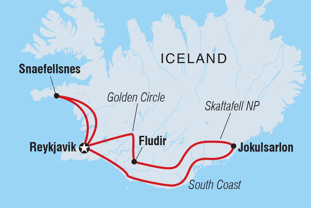 <Velkominn! Willkommen in Reykjavik - der nördlichsten Hauptstadt der Welt und dem Startpunkt deines Abenteuers. Du wirst am Flughafen abgeholt und zu deinem Hotel gebracht. Um 18 Uhr findet ein Begrüßungstreffen statt, bei dem du deine Gruppe und deinen örtlichen Reiseleiter kennenlernst. Wenn du früher ankommst, kannst du einen Ausflug ins Nationalmuseum machen, um die Dauerausstellung über die Geschichte Islands zu sehen. Nach dem Begrüßungstreffen feierst du den Beginn eines neuen Abenteuers beim Abendessen mit deiner Gruppe, bei dem dir dein Reiseleiter die isländische Küche näher bringen wird.