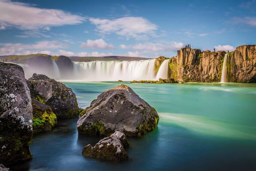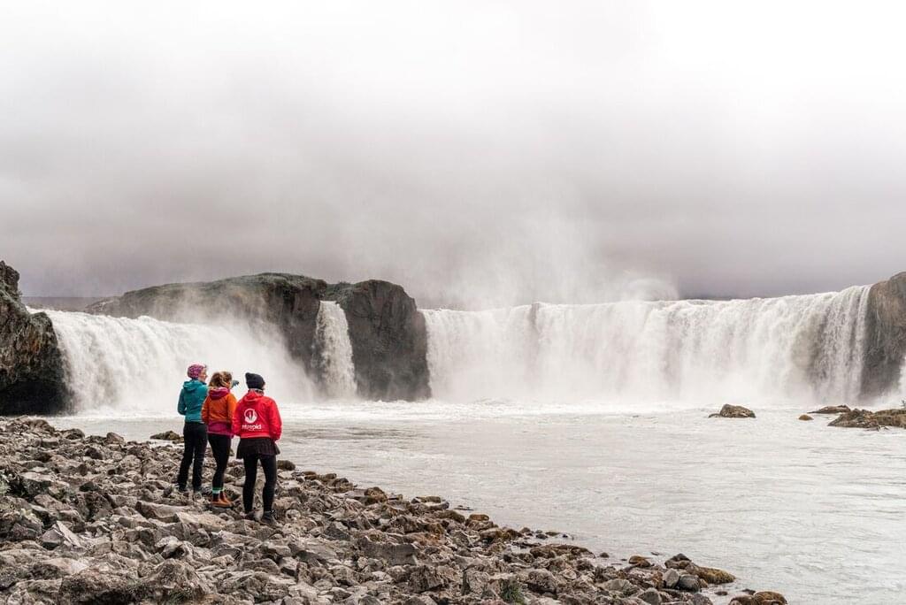 <Fahre um die Halbinsel Trollaskagi herum und besuche die kleine Fischerstadt Siglufjordur. Erkunde das Stadtzentrum, das auf drei Seiten von hoch aufragenden Bergen und im Norden vom Fjord überragt wird. Weiter entlang der Küste hast du die Möglichkeit, deine Zehen in das Eismeer zu tauchen, bevor du eine isländische Schnapsverkostung mit lokalen Köstlichkeiten wie Haifisch, Lammkopf, Leberwurst und Trockenfisch genießt. Weiter geht es nach Hauganes, wo du an Bord einer klimaneutralen Walbeobachtungstour die sanften Riesen der isländischen Gewässer kennen lernst. Mink- und Buckelwale werden in dieser Gegend häufig gesichtet, und das Boot hält einen respektvollen Abstand zu den Walen, damit du sie in ihrer natürlichen Umgebung beobachten kannst, ohne sie zu stören oder zu beunruhigen. Ein erfahrener Walbeobachtungsführer wird dich an Bord begleiten und dir helfen, diese wunderschönen Tiere zu entdecken, während er dir einen Einblick in ihr Leben und ihren Lebensraum in arktischen Gewässern gibt. Weiter geht es in die Stadt Akureyri, wo du nach deiner Ankunft eine Orientierungsfahrt mit dem Guide machst. Als Nächstes fährst du zum mächtigen Wasserfall Godafoss, der auch als "Wasserfall der Götter" bekannt ist, bevor du zu deinem Hotel in Husavik weiterfährst.