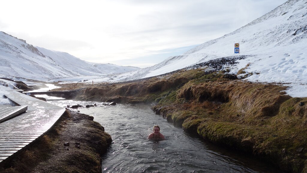 Heiße Quellen und ein Bad im warmen Bach "Hvarma"