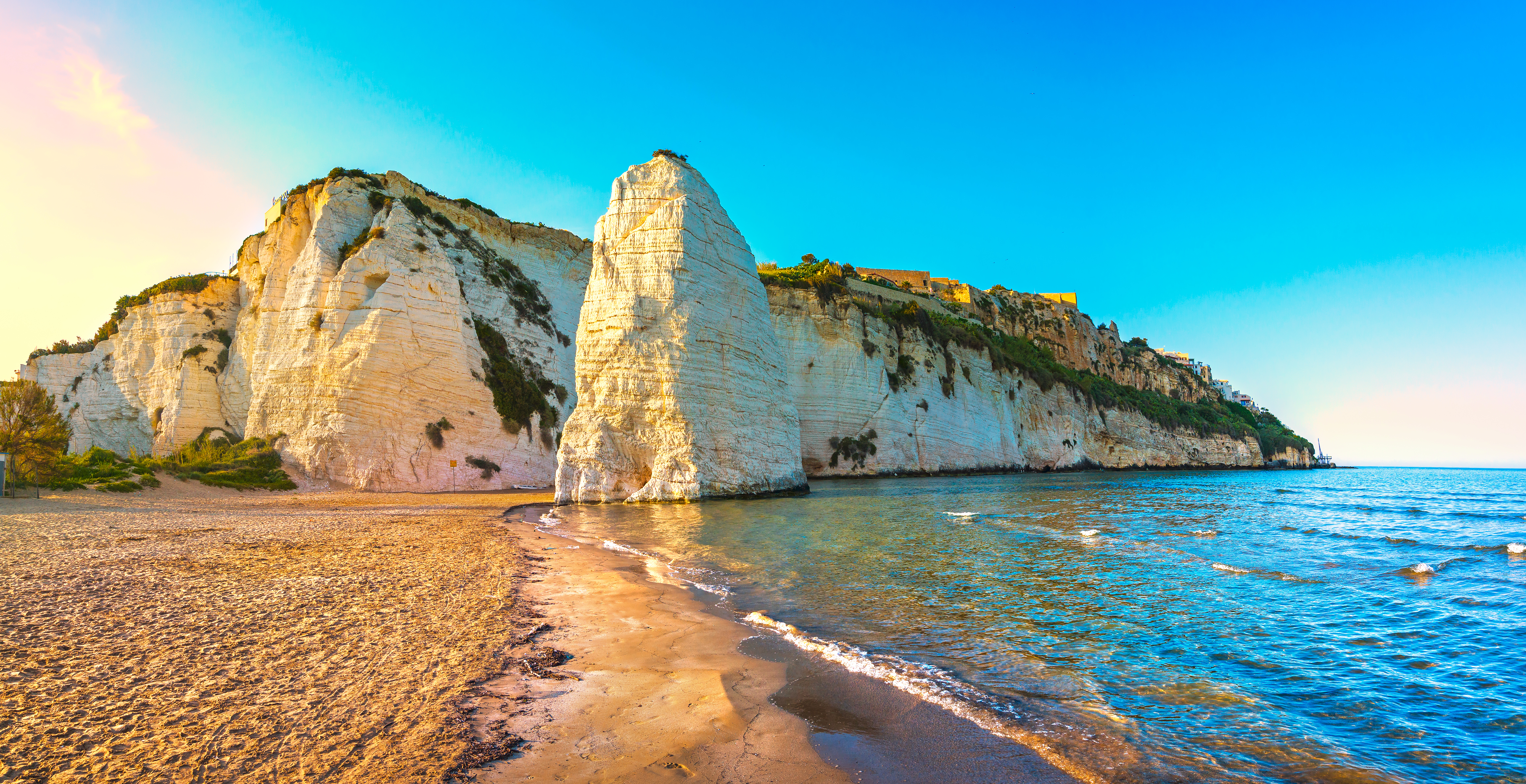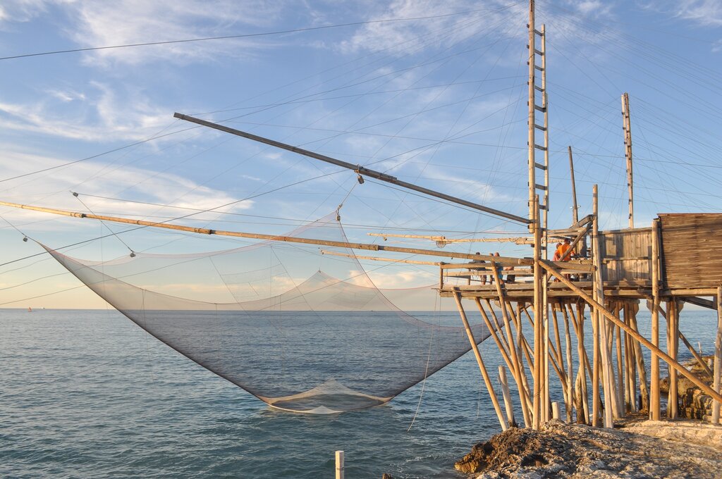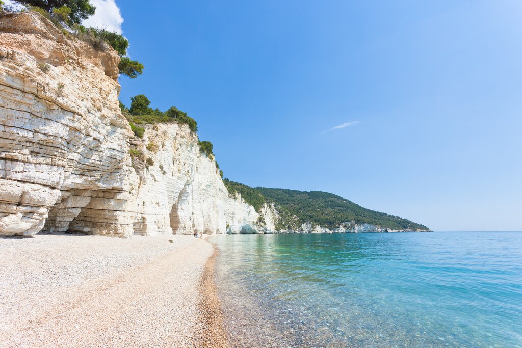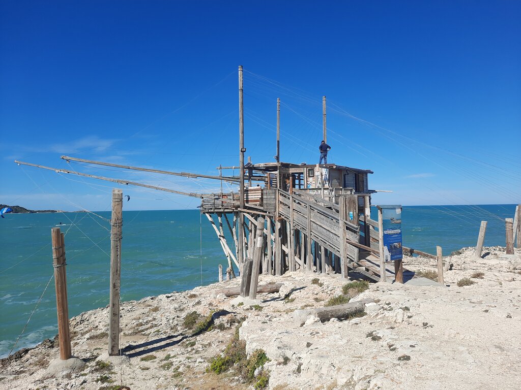 <Heute starten wir direkt von unserem Hotel und folgen der Küste gen Norden, wo uns das Meer mit seinem endlosen Blau empfängt. Unterwegs tauchen die markanten Trabuccos auf – die charakteristischen Fischereigeräte der Region – und zeichnen sich wie geheimnisvolle Silhouetten gegen den Himmel ab. Am idyllischen Strand von Scialmarino lockt das klare Wasser zu einer erfrischenden Badepause, bevor wir uns bei einem gemeinsamen Mittagessen stärken. Danach lassen wir uns durch die engen, verwinkelten Gassen der mittelalterlichen Altstadt von Vieste treiben und sammeln unvergessliche Eindrücke vom Leben an Apuliens Küste.