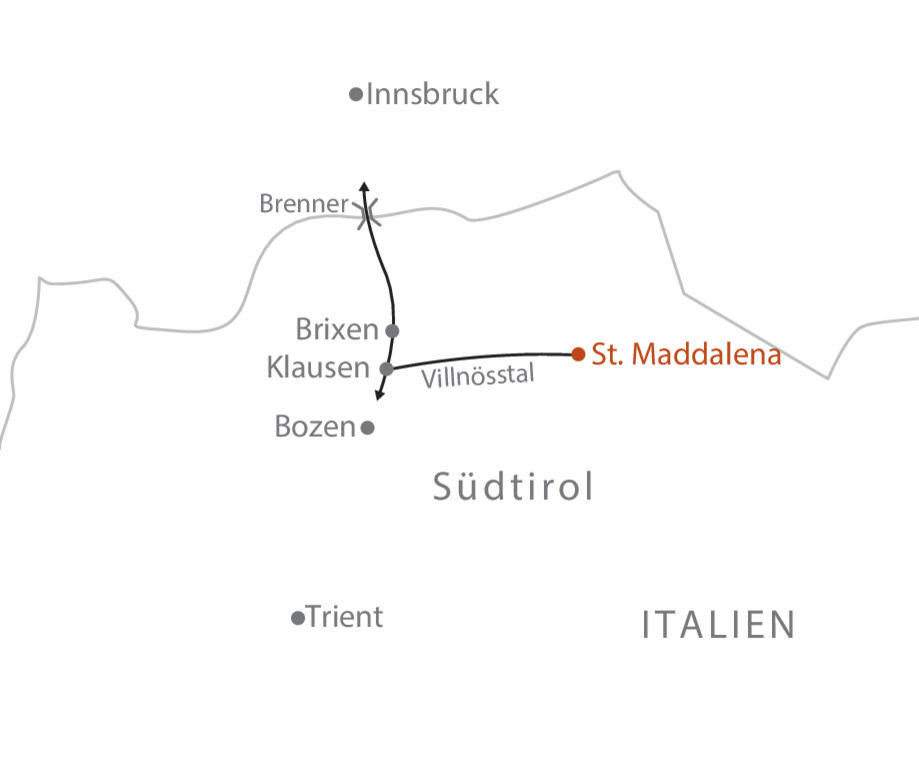 Am Anreisetag um 18:00 Uhr treffen wir uns im Hotel Ranuimüllerhof, St. Johann 1, 39040 Villnösstal, Tel.: +39-0472-840182.
