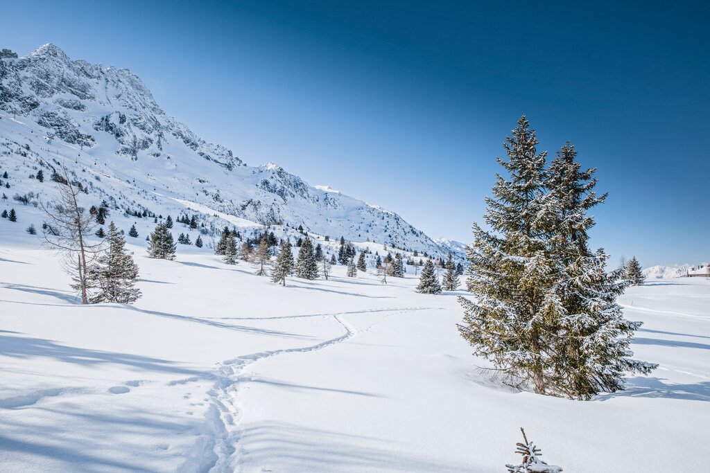 Die Pozze-Alm befindet sich auf einem Hochplateau, von dem aus die Felsgipfel der Brenta-Dolomiten und die Gletschergipfel der Presanella-Gruppe in all ihrer Schönheit bewundert werden können. Die abwechslungsreiche Schneeschuhwanderung führt uns von der Stabli-Alm durch Wald mit jahrhundertealten Baumriesen und weitläufige Almflächen hinauf zu unserem Ziel in 2.237 Metern Höhe, wo wir die beeindruckende Aussicht genießen können.