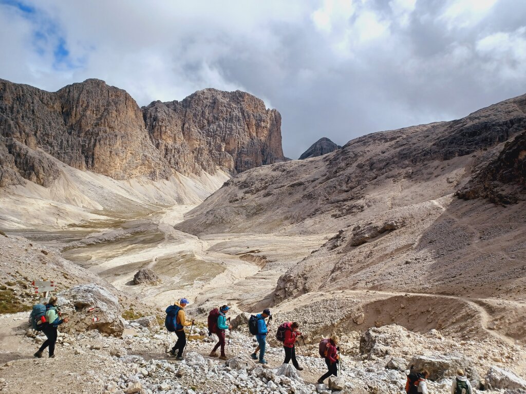 <Wir werden in Seis am Schlern von unserem ASI-Wanderführer herzlich begrüßt. Gemeinsam fahren wir zur Frommer Alm und starten von dort den Aufstieg zum Kölner Haus im Rosengarten auf 2.340 m. Oben angekommen, genießen wir den ersten Blick auf die faszinierende Bergwelt und spüren direkt die Magie der Dolomiten.