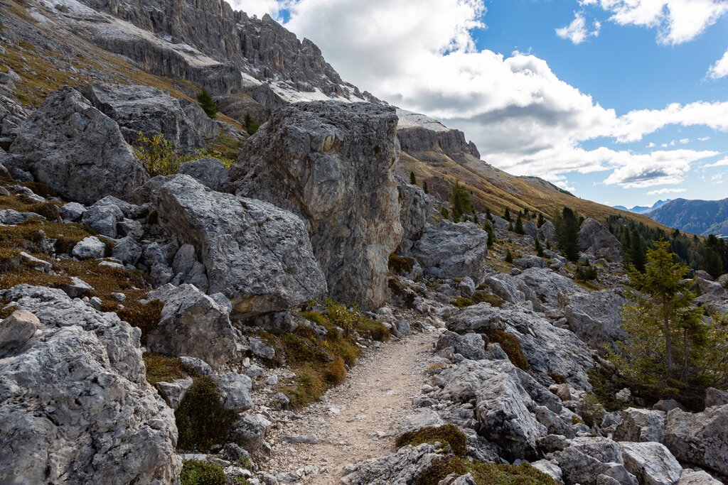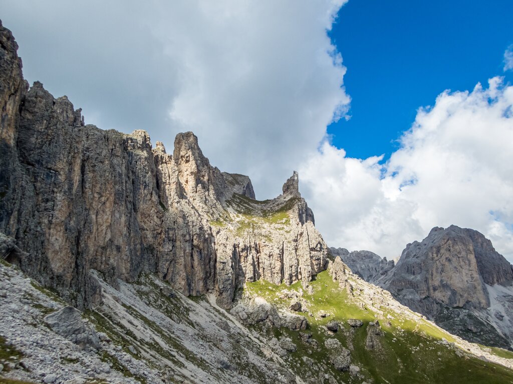<Zunächst wandern wir an den markanten Vajolettürmen vorbei und weiter an der Vajoletspitze auf 2.749 m oberhalb des Vajolettals bis zum Grasleitenpass auf 2.601 m. Über den Pas de Antermoia und den Pas de Laussa erreichen wir schließlich das Rifugio d'Antermoia auf 2.497 m und saugen die Eindrücke der uns umgebenden Bergwelt in uns auf.