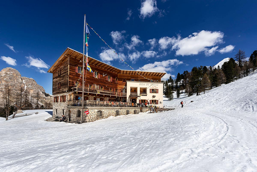 Die privat geführte Schutzhütte im sagenhaften Fanesgebiet in den Dolomiten präsentiert sich eher wie ein komfortables Hotel als eine spartanische Berghütte. Für den ungewöhnlichen Luxus in alpiner Umgebung sorgen gemütliche Zimmer und die feine Südtiroler Küche der Familie Mutschlechner. Auf 2.060 m auf den Almen von Kleinfanes gelegen bietet die Hütte einen wunderschönen Ausblick auf die Bergumrahmung der Faneshochfläche, mit den markanten Gipfeln von La Varella, Heiligkreuzkofel und Zehnerspitze. Die Faneshütte bietet Unterbringung in Doppelzimmern mit Dusche und WC, Doppelzimmern mit Etagendusche, Vierbettzimmern mit Etagendusche oder im Bergsteigerlager, beste Küche und gemütliche Gasträume. Gepäcktransport ab Parkplatz zur Hütte und zurück.