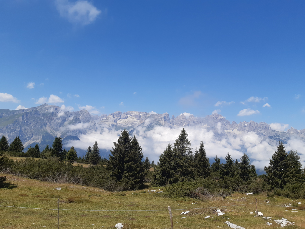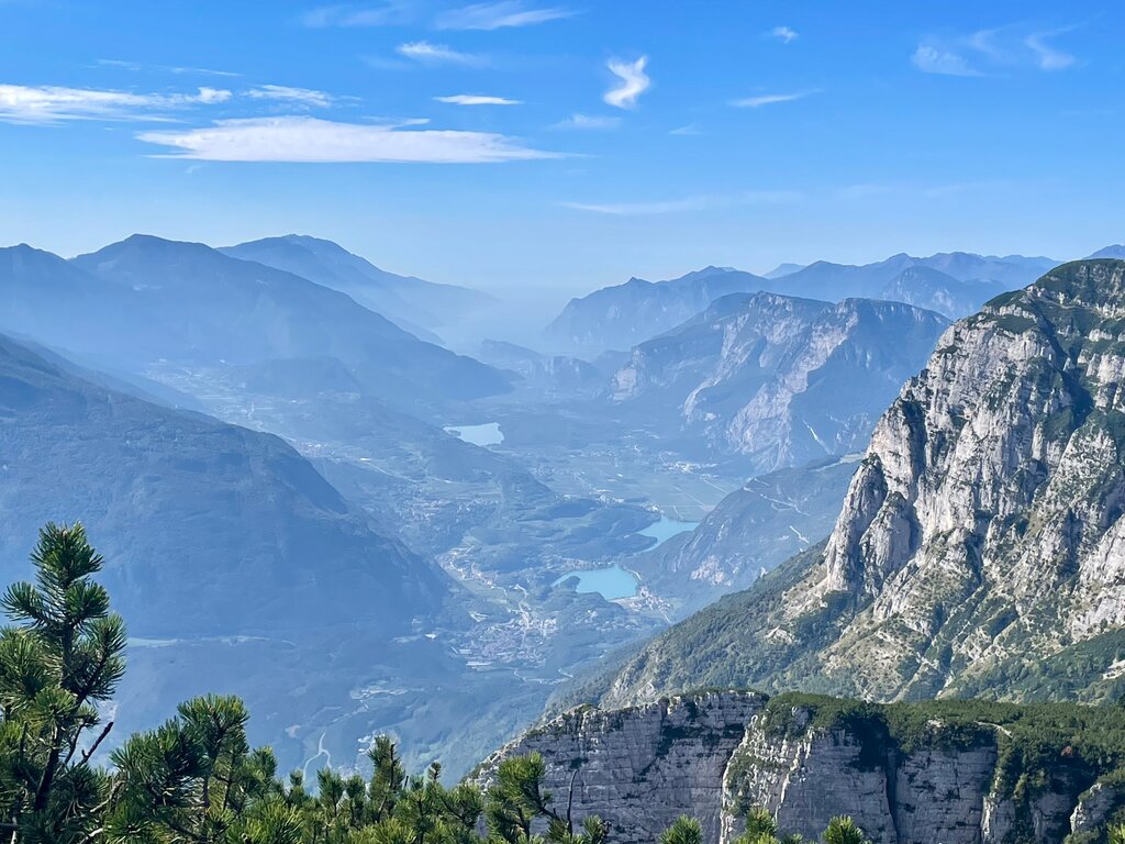 <Auffahrt mit der Seilbahn auf die Paganella (2.124 m), ein aussichtsreicher Gipfel inmitten der Bergwelt des Trentino. Ebenso aussichtsreich verläuft die Kammwanderung zur Berghütte Baita del Germano (1.800 m). Immer im Blick die beeindrucken Gipfel, Wände und Türme der Brenta Dolomiten und das türkisblaue Wasser des Molvenosees tief unter uns. Der Abstieg zum See führt über blumenreiche Bergwiesen und durch Wälder. Wer sich den Abstieg ersparen möchte kann auf einem Rundweg zurück zur Seilbahn wandern und direkt nach Andalò hinunter schweben.