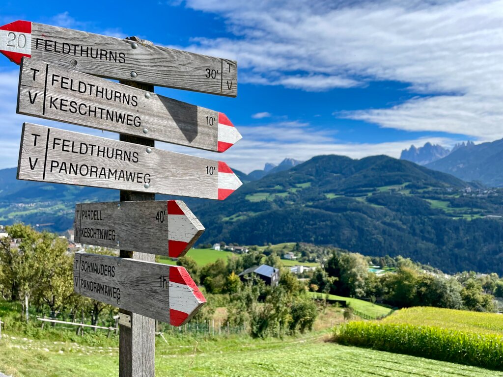 <Nach einer kurzen Fahrt mit dem Zug erleben wir eine faszinierende Wanderung entlang des Kastanienwegs von Brixen über Feldthurns nach Klausen! Von der Altstadt von Brixen, einer historischen Stadt, führt uns der Weg durch malerische Weinberge und charmante Dörfer. Unterwegs können wir die atemberaubende Aussicht auf die Dolomiten genießen und lokalen Köstlichkeiten probieren. Die Wanderung endet in Klausen, wo wir das historische Flair der Stadt erleben können.
