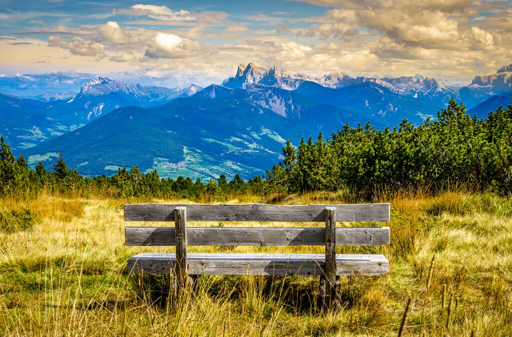 <Kurze Fahrt mit den öffentlichen Verkehrsmitteln Richtung Gasserhütte (1.757 m) hoch über dem Eisacktal. Von hier wandern wir anfangs durch lichte Wälder, später über Bergwiesen auf das Rittner Horn (2.261 m). Bei entsprechenden Wetter- und Sichtverhältnissen genießen wir hier einen spektakulären Rundblick vom Langkofel und den Dolomiten über die Zillertaler Alpen bis hin zum Ortler. Zu Fuß und mit Seilbahnunterstützung gelangen wir nach Klobenstein und von Oberbozen fahren wir ganz entspannt mit der Rittner Seilbahn bis direkt nach Bozen. Von dort nehmen wir den öffentlichen Bus und fahren zu unserer Unterkunft nach Kaltern - alleine die Fahrt durch die wunderschöne Südtiroler Kulturlandschaft ist ein Erlebnis.