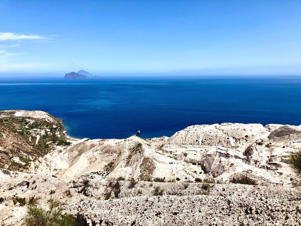 Wir starten in Lami, einem kleinen Bauerndorf hoch über Lipari, und wandern rund um den Monte Pilato, den „Kahlkopf“. Dabei begleiten uns stets die Ausblicke auf Panarea und den rauchenden Stromboli. Ein kleiner Abstecher führt uns zu einem stillgelegten Bimssteinabbau, der beeindruckend vor uns liegt und im türkisblauen Meer zu verschwinden scheint.