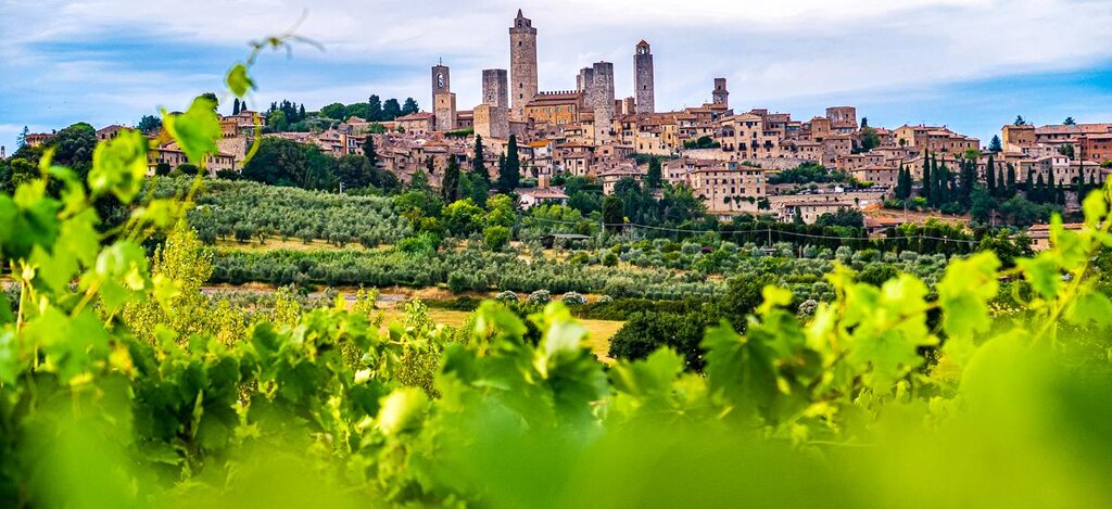 <Der Weg nach San Gimignano führt durch die typisch anmutige Hügellandschaft der Toskana vorbei an Weinreben und Olivenbäumen, soweit das Auge blickt. Von weitem schon wirst du die Silhouette der Stadt erblicken. Von den 72 Türmen, die die Stadt im Mittelalter einmal hatte, existieren heute noch 13. Zähle doch mal, wie viele du siehst! Obwohl die Stadt recht klein ist, wäre eine Liste der sehenswerten Orte sehr lang, denn praktisch der gesamte Ort ist eine Art mittelalterliches Freilichtmuseum! Gegen Mittag bist du zu Gast bei Familie Fioroni. Die drei Brüder Umberto, Amcio und Bernardo betreiben in zwei Generationen ein Bio-Weingut mit angeschlossener Land- und Gastwirtschaft. Auf einem Rundgang erfährst du viel Wissenswertes über den Anbau der hiesigen Trauben und über die Herstellung des berühmten Chiantis. Im Anschluss wirst du in herrlicher Umgebung und prächtigem Blick auf San Gimignano mit Spezialitäten der Region verwöhnt. Der dazu gereichte Wein lässt dich zweifelsohne das Dolce Vita in vollen Zügen auskosten. Gut gestärkt und beseelt kannst du dich auf der Rückfahrt durch das malerische Chianti-Gebiet zurücklehnen und noch einmal einen Augenschmaus nach dem anderen genießen, bevor du Florenz erreichst.