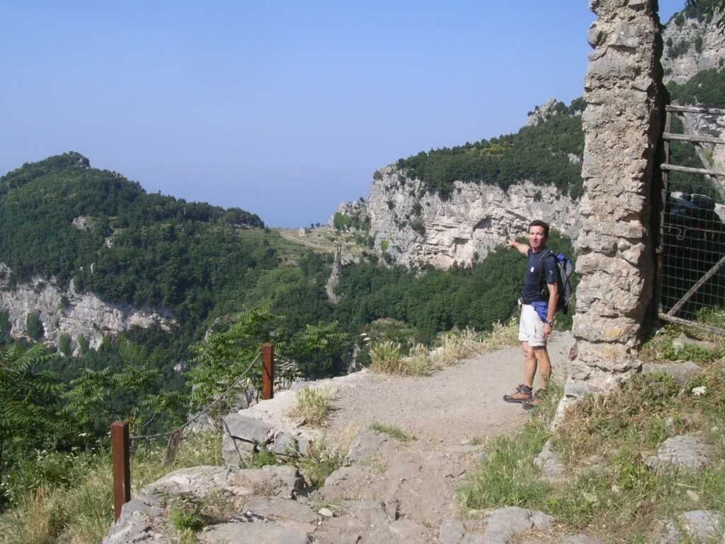 <Wir wandern von Maiori auf alten Maultierwegen durch das stille Tal des Sambuco, vorbei an verlassenen Gehöften, bis zur Wallfahrtskirche San Nicola auf 486 m. Von dort genießen wir einen atemberaubenden Blick über die Amalfiküste und die Monti Lattari, bevor wir den Abstieg zurück nach Maiori antreten.