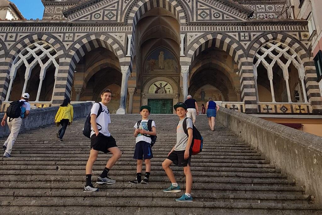 <Heute Morgen lässt du Minori hinter dir und fährst an den Bergen vorbei zu einem Agriturismo - einem landwirtschaftlichen Betrieb, der auch Mahlzeiten und Unterkunft anbietet. Du wirst hier zwar nicht übernachten, aber du kannst 1,5 Stunden in der herrlichen Umgebung verbringen und die vor Ort angebauten Produkte probieren - ein sicherer Weg, um deine Kinder dazu zu bringen, ihr Gemüse zu essen! Weiter geht es nach Sorrento, einem weiteren schönen Ferienort, der für seine Zitronen und die steil abfallenden Klippen berühmt ist. Du kommst am frühen Nachmittag an und hast Zeit für eigene Erkundungen. -