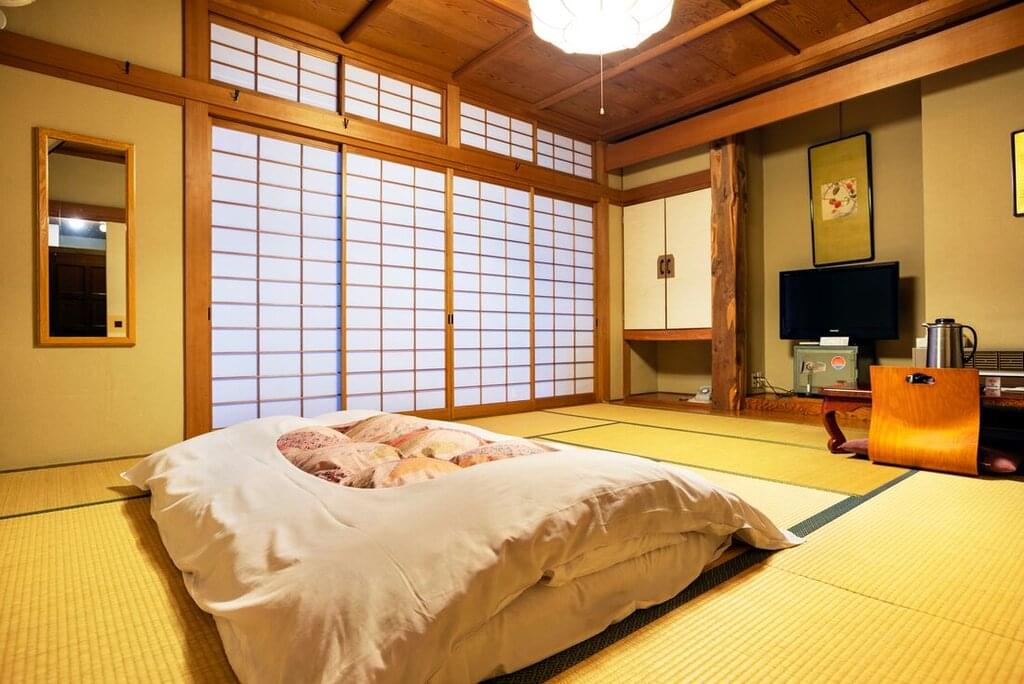 • Hotel (6 Nächte), Minshuku: traditionelles japanisches Gästehaus (1 Nacht)