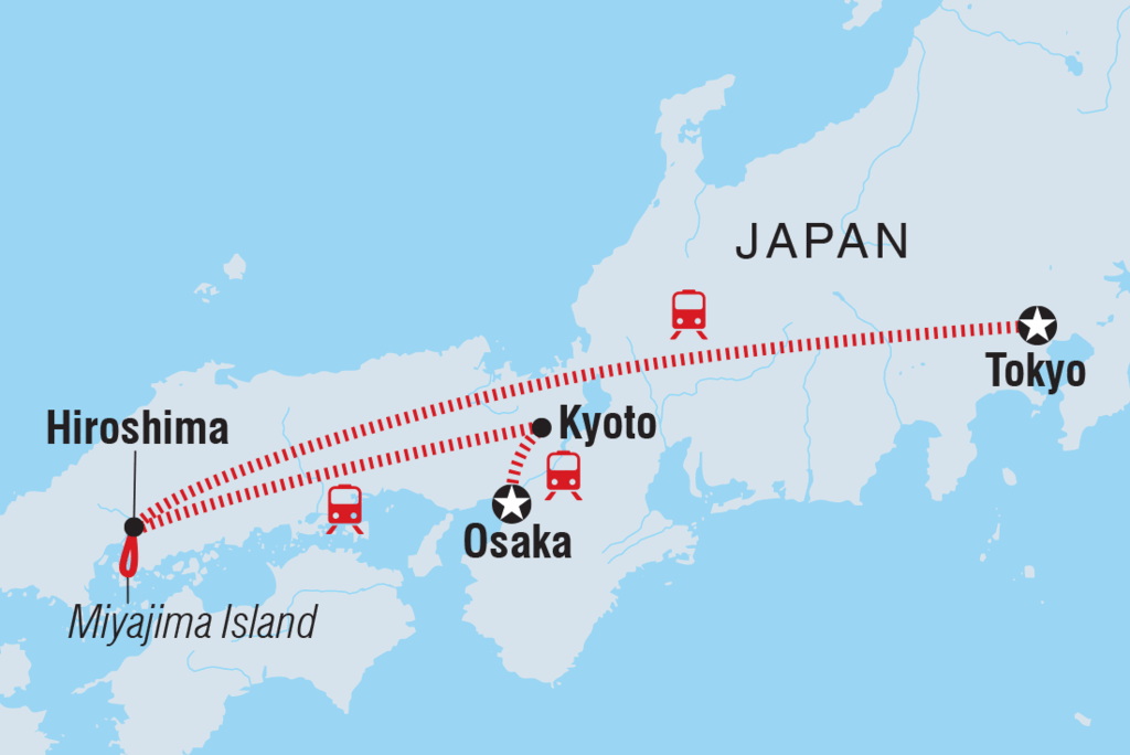 Japan, die Heimat von Sumo-Ringen, Sake, Geishas, Karaoke und Onsen, hat eine Menge zu bieten. Und auf dieser neuntägigen Reise zu einigen der berühmtesten Städte kannst du das Land von seiner besten Seite kennenlernen. Erlebe das neonfarbene Nachtleben von Tokio, besinne dich bei einem Besuch in Hiroshima, entdecke die Jahrtausende alte Kultur und Geschichte in Kyoto und beende deine Reise im eklektischen Osaka. Und hast du schon von dem Essen gehört? Weltklasse-Sushi, köstliches Ramen, köstliches Donburi - du wirst bestimmt nicht hungrig bleiben. Mit deinem örtlichen Reiseleiter, der dir die richtige Richtung weist, und viel Zeit, um das Land der aufgehenden Sonne in deinem eigenen Tempo zu erkunden, kannst du die Kultur und den Charme des Landes erleben.