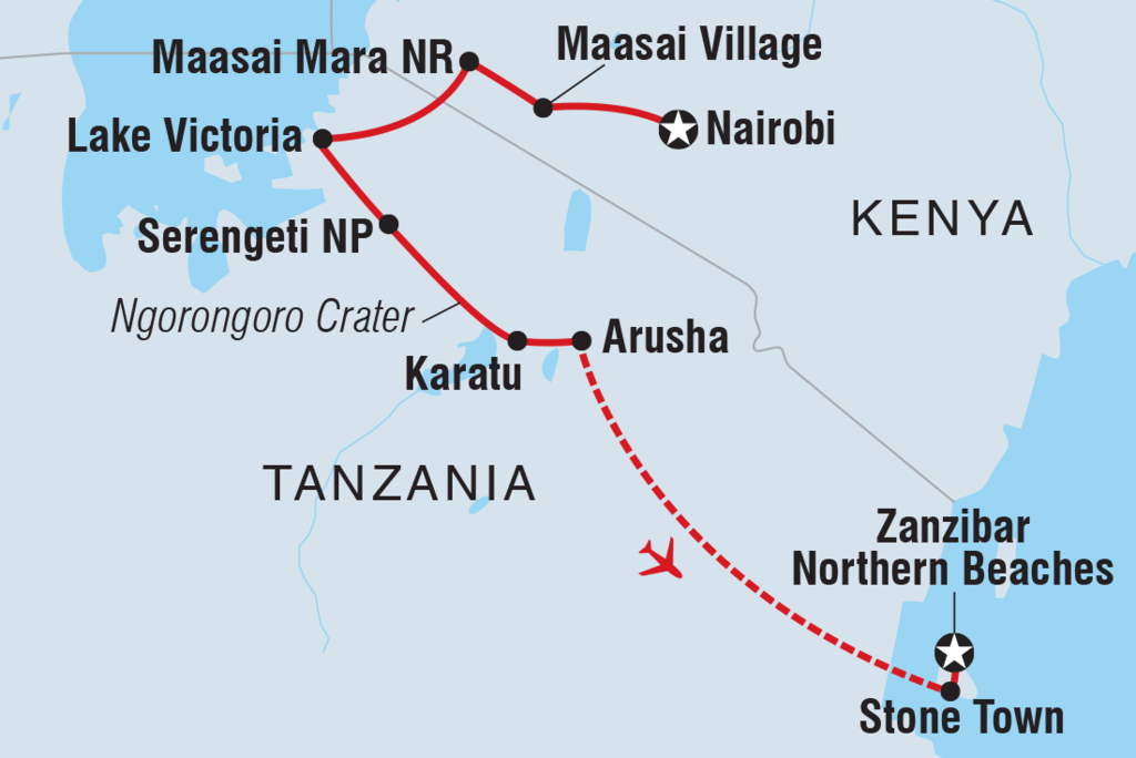 Du hast 13 Tage Zeit und den Wunsch, so viel wie möglich von Ostafrika zu sehen, während du dich an weißen Sandstränden entspannst? Willkommen auf der Reise deines Lebens. Mehrere 4WD-Safaris in den Nationalparks Maasai Mara und Serengeti, Zwischenstopps in abgelegenen Marktstädten, eine Nacht in einem Maasai-Dorf und viel Zeit an den Puderstränden Sansibars - diese Reise ist die perfekte Einführung in die Vielfalt Ostafrikas. Und das alles in einer kleinen Gruppe von Gleichgesinnten, mit denen du lebenslange Freundschaften schließen kannst. Das nenne ich ein echtes Abenteuer!