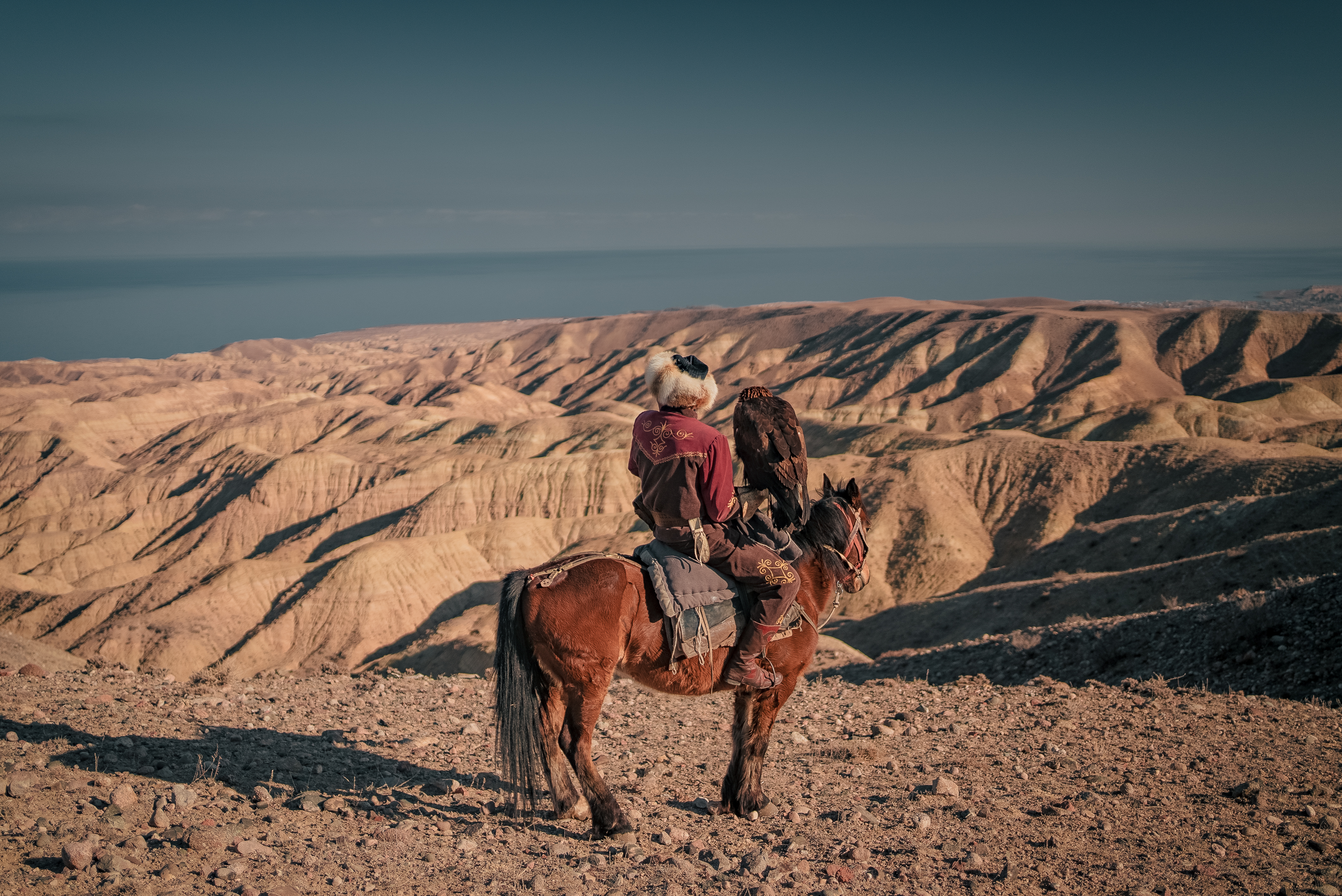 <Heute ist der erste Tag Ihres Jagdtages. Am Morgen zeigt und erzählt der Jäger die Geschichte der traditionellen Jagd und wie er selbst zum Hüter dieses nomadischen Erbes wurde. Sobald der Raubvogel bereit ist, reiten Sie mit Ihren Pferden zum ersten Ort, um nach Beute zu suchen. Heute findet die Jagd an einem Seeufer namens Kongdoy mit Blick auf den Issyk Kul See statt. Mittagspause zusammen mit den Jägern. Abendessen und Übernachtung im Haus des Jägers. Reiten 4-5 Stunden.
