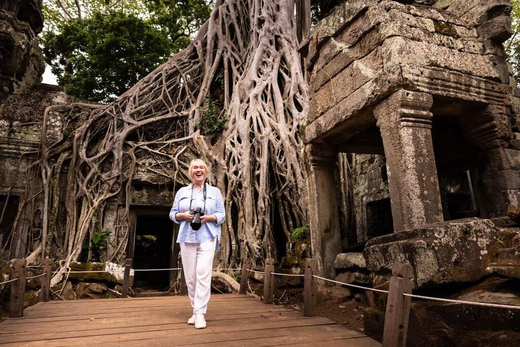 <Nach dem Frühstück geht es zum Ta Prohm-Tempel, in dessen Steinfundamente große Bäume eingelassen sind - kraftvolle Symbole der Natur. Als Nächstes besuchst du den Banteay Srei-Tempel und schießt ein paar Fotos von den komplizierten Steinmetzarbeiten. Du kannst zurück zum Resort fahren und die Stadt Siem Reap erkunden oder dein Ticket für die Angkor-Ruinen nutzen, um die Anlage weiter zu erkunden. Genieße heute Abend ein letztes Abendessen in der Khmer-Landschaft, um dich von deiner Gruppe und Kambodscha zu verabschieden. In einer rustikalen und romantischen Umgebung setzt du dich zu einem privaten Essen in den Reisfeldern des ländlichen Siem Reap zusammen. -