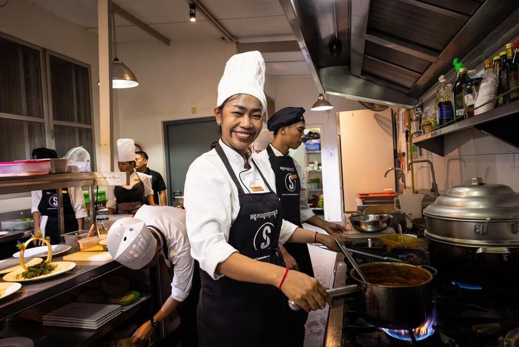 <Wenn du möchtest, kannst du heute sehr früh aufbrechen und den Angkor-Komplex bei Sonnenaufgang besuchen (optional). Danach wirst du den Tag damit verbringen, die fantastischen Tempel von Angkor zu entdecken. Die erste Hälfte des Tages wirst du von einem privaten archäologischen Angkor Wat-Führer begleitet, der dich mit Fachwissen und Einblicken versorgt. Beginne am Angkor Wat - dem größten und vollständigsten Bauwerk und dem einzigen Tempel von Angkor, dessen Eingang nach Westen ausgerichtet ist. Zum Mittagessen besuchst du die Sala Bai Hotel School, in der unterprivilegierte einheimische Jugendliche Fähigkeiten erlernen, um eine Anstellung im Gastgewerbe zu finden (Hinweis: Das Sala Bai ist von Montag bis Freitag geöffnet und schließt normalerweise während der Schulferien, so dass an diesen Tagen ein alternatives Restaurant genutzt wird). Genieße ein von den Schülern der Schule zubereitetes Essen und besuche anschließend Angkor Thom - die "Große Königsstadt" - ein Tempel, der für seine Reihe kolossaler in Stein gehauener menschlicher Gesichter berühmt ist. Von hier aus fährst du aus der Stadt hinaus zu einem alten Arbeitskloster, um einen besonderen Einblick in das Leben eines Mönchs und den Theravada-Buddhismus zu bekommen. Triff die Mönche, genieße einen heiligen Wassersegen für Glück und Wohlstand und lass dir ein rotes Band um dein Handgelenk binden, das dich auf deinen Reisen beschützen soll. Den Rest des Abends kannst du damit verbringen, die Bars von Siem Reap zu erkunden oder dich in deinem Resort zu entspannen. -