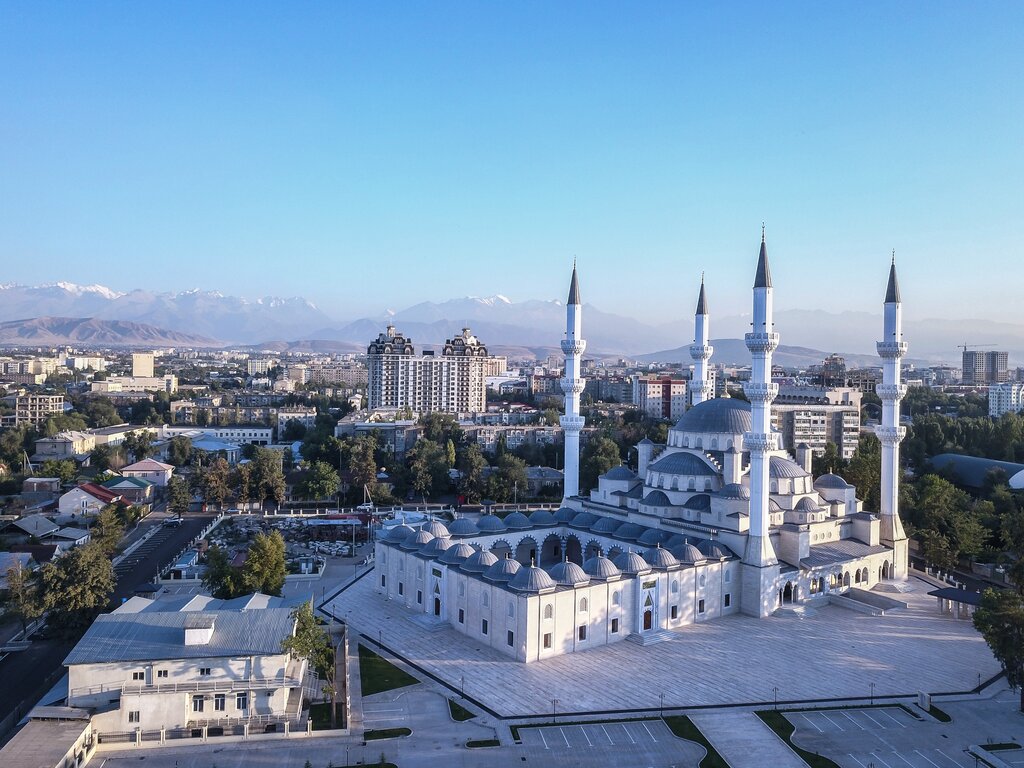 <Am Morgen Ankunft in Bishkek. Transfer ins Hotel. Dort erwartet uns ein Frühstück, anschließend Stadtrundfahrt durch die Hauptstadt Kirgistans. Am riesigen Ala-Too-Platz fantastische Ausblicke auf die verschneiten Berggipfel der Kyrgyzkette. Wir besuchen den orientalischen Markt, schlendern durch grüne Parks und gewinnen einen ersten Eindruck von diesem uns noch unbekannten, geheimnisvollen Land. -