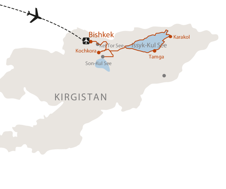 Auf den Spuren der Bergnomaden wandern wir in Kirgistan durch eine herrliche Bergwelt. Im Angesicht des mächtigen Tien-Shan-Gebirges schweift unser Blick über üppige Bergwiesen, entlang bizarrer Canyons und rauschender, glasklarer Wildbäche. Einer der Höhepunkte ist die unberührte Bergwelt am Son-Kul-See, wo wir uns auf die zwei Übernachtungen in den authentischen Yurten freuen können. Der Weg führt uns in ursprüngliche Dörfer, weiter in die interessante Kleinstadt Karakol bis an die Ufer des Issyk-Kul-Sees, dem zweitgrößten Bergsee der Welt – Kirgistan, ein unvergessliches Naturerlebnis.
