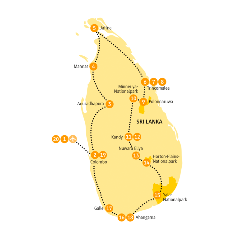 - Linienflug mit SriLankan Airlines (Tarif L) ab/bis Frankfurt. Andere Flughäfen mit Aufpreis möglich.