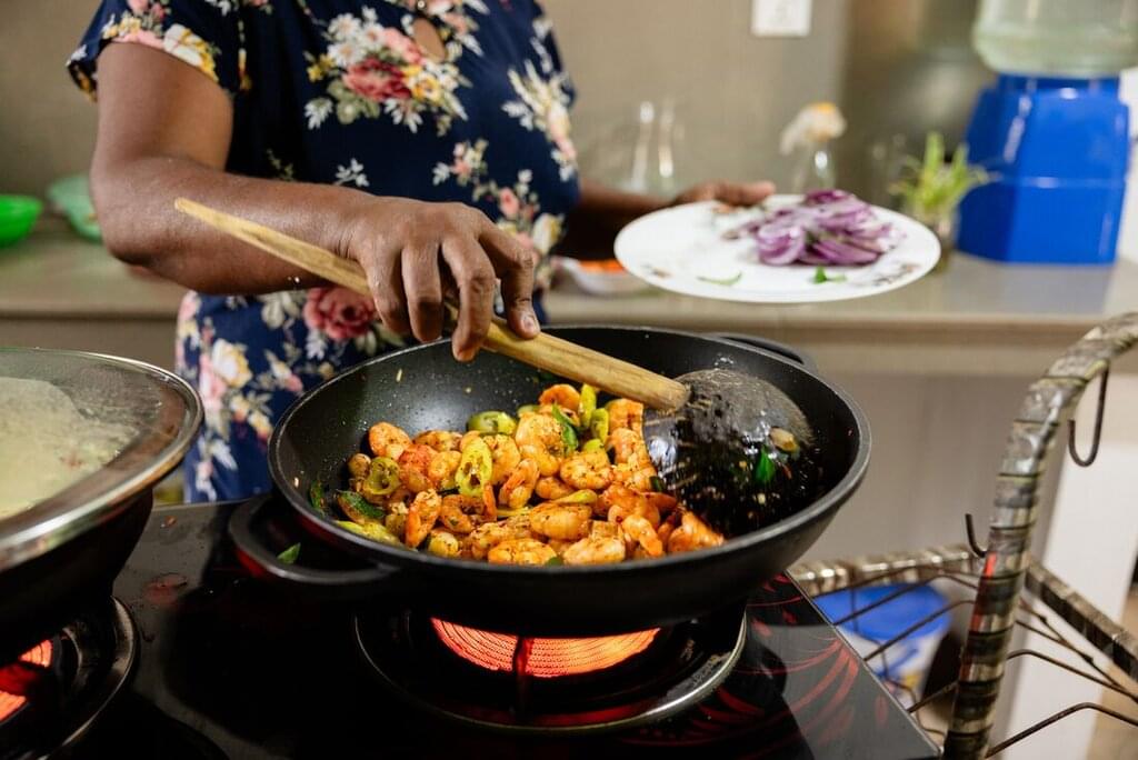 <Ayubowan! Willkommen in Sri Lanka. Wenn du am Bandaranaike International Airport in Colombo ankommst, wirst du von einem Vertreter von Intrepid in Empfang genommen und zu deinem Hotel in der Nähe von Negombo gebracht. Hier triffst du deinen Reiseleiter und deine Mitreisenden bei einem Begrüßungstreffen um 18 Uhr. Wenn du früher ankommst, kannst du dich noch am Strand unter dem blauen Himmel entspannen. Nach dem Begrüßungstreffen führt dich dein Reiseleiter zu einem Meeresfrüchte-Dinner in einem lokalen Restaurant. Die sri-lankische Küche ist berühmt für ihre reichhaltigen Düfte, Gewürze und Geschmäcker, und heute Abend wirst du herausfinden, warum das so ist, wenn du einheimische Spezialitäten wie Pol Sambol (ein leckeres Kokosnussgericht) und geröstetes Paan (knusprig geröstetes Brot) probierst.