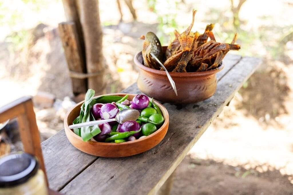 <Steh heute früh auf und besuche den Fischmarkt von Negombo. Morgens ist die beste Zeit, um den Markt zu besuchen - dein Reiseleiter wird dir helfen, dich in dem organisierten Gewirr von Verkäufern zurechtzufinden, die Krabben, Hummer und Tintenfische anbieten. Dann nimmst du Abschied von Negombo und fährst nach Dambulla, wo du die nächsten drei Nächte verbringen wirst. Richte dich in deinem Hotel ein und mache dich am späten Nachmittag auf den Weg zu einem der Höhepunkte eines jeden Sri Lanka-Besuchs - der großartigen UNESCO-Welterbestätte des Palastes von Sigiriya (Löwenfelsen). Dieser dramatische Felsen, der sich aus der umliegenden Ebene erhebt, wird von einer Palastruine gekrönt. Der Weg nach oben ist zwar anstrengend, aber der Anblick ist es wert. Während des Aufstiegs erzählt dir dein Führer Geschichten über die alte Zivilisation, die einst auf dem Felsen lebte. Am Abend kehrst du nach Dambulla zurück und genießt ein Barbecue nach srilankischer Art. Hier gibt es eine köstliche Auswahl an frisch gegrilltem Fisch, Fleisch und Gemüse. Außerdem wird dir gezeigt, wie du Chili- und Kokosnuss-Sambol zubereiten kannst, damit du den Geschmack Sri Lankas auch zu Hause nachmachen kannst.