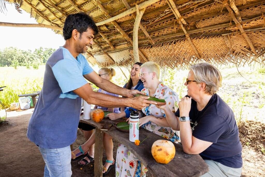 <Ayubowan! Willkommen in Sri Lanka. Dein Abenteuer beginnt in der Stadt Negombo, in der Nähe des internationalen Flughafens, mit einem Willkommenstreffen um 17.30 Uhr. Wenn du früh ankommst, kannst du dich auf das Leben am Meer in Sri Lanka einstimmen, indem du die lokalen Fischerboote beobachtest und frische Meeresfrüchte probierst. Die wunderschöne Umgebung erkundest du am besten mit einem Fahrrad, das du mit Hilfe der Hotelrezeption mieten kannst.