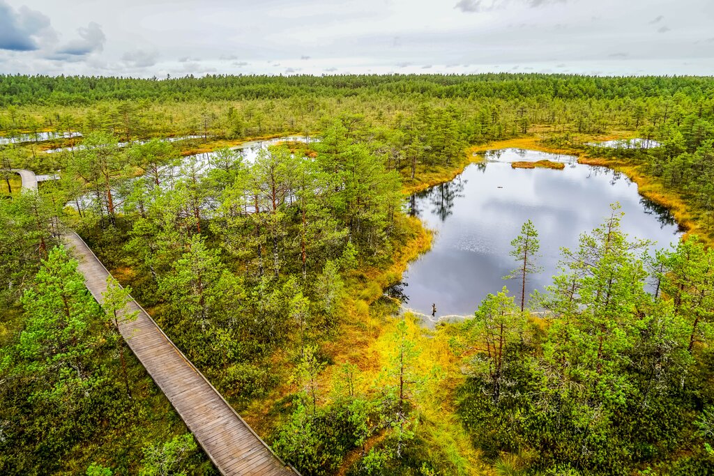 <Unsere Fahrt nach Lettland ist reich an Eindrücken. Noch in Litauen halten wir am Berg der Kreuze – ein Hügel, übersät mit Tausenden von Kreuzen, groß und klein, schlicht und kunstvoll. Ein bewegender Ort des Glaubens und der Hoffnung. Hinter der Grenze erwartet uns der Nationalpark Ķemeri. Auf einem Holzsteg wandern wir durch eine geheimnisvolle Moorlandschaft: knorrige Moorkiefern, leuchtende Moose, stille Tümpel und kleine Seen, die das Sonnenlicht wie Spiegel auffangen. Am Abend erreichen wir Riga, die „Perle des Baltikums“. In der Altstadt mit ihren Gassen, Plätzen und prachtvollen Jugendstilfassaden spüren wir sofort das besondere Flair dieser lebendigen Stadt.