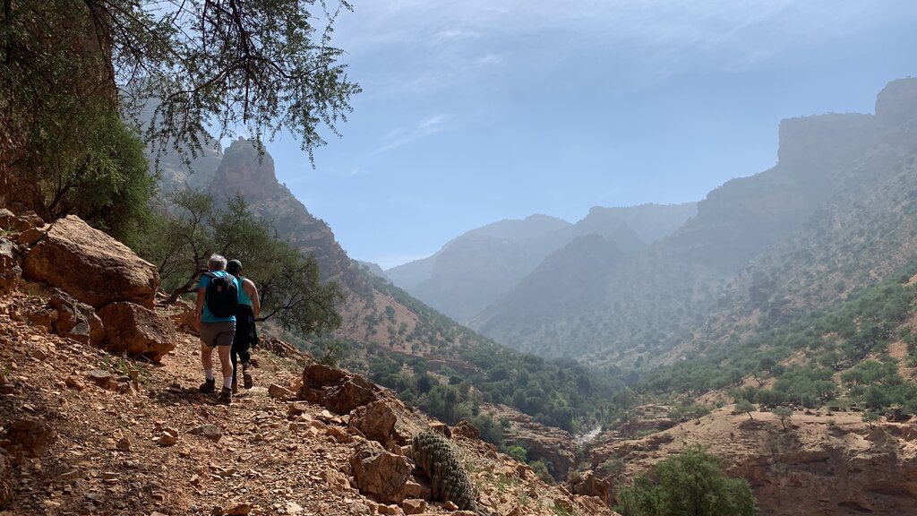Begib dich auf eine faszinierende Wanderreise im bezaubernden Souss Tal in Südmarokko, zwischen den majestätischen Gipfeln des Hohen Atlas und den bizarren Schluchten des Antiatlas. Deine Reise führt dich durch eine Landschaft von zeitlosen Berberdörfern, die ihre alten Traditionen und Lebensweisen bewahrt haben. Auf deinem Weg entdeckst du malerische Wasserwege, die durch die Täler schlängeln und eine Oase der Erfrischung bieten. Die Route führt dich durch herrliche Wadis, in denen das klare Wasser sanft über glatte Steine plätschert und du die Ruhe der Natur in vollen Zügen genießen kannst. Die Umgebung ist von blühenden Oleandern gesäumt, die einen betörenden Duft verströmen und das Auge mit ihrer Schönheit erfreuen. Während deiner Wanderung erlebst du die Gastfreundschaft der Berber und tauchst ein in ihre Kultur, während du in traditionellen Unterkünften übernachtest und lokale Köstlichkeiten genießt. Die Mischung aus atemberaubender Landschaft, kultureller Tiefe und herzlicher Begegnungen macht diese Wanderreise rund um Taroudant zu einem unvergesslichen Abenteuer für alle Sinne. Unser Standort Taroudant, ein Juwel in Südmarokko, verführt mit einem charmanten Mix aus historischer Pracht und lebendiger Atmosphäre. Eingebettet in massive Stadtmauern enthüllt die Stadt eine Labyrinth aus engen Gassen, belebten Souks und farbenfrohen Basaren. Im Gegensatz zum Touristenmagnet Marrakech eher ein Geheimtipp unter Reisenden ist sie Hauptstadt der gleichnamigen Provinz Taroudant und das Zentrum für die Berber aus Hohem Atlas & Antiatlas. Hier entfaltet sich das traditionelle marokkanische Leben in seiner vollen Pracht, während du von den wunderbaren Aromen der lokalen Küche umgeben bist. Die warme Gastfreundschaft der Einheimischen und die Palmen gesäumten Plätze laden zum Verweilen ein. Taroudant ist ein Ort, der das echte Marokko verkörpert und einen einzigartigen und authentischen Einblick in die Kultur und Geschichte der Region bietet.