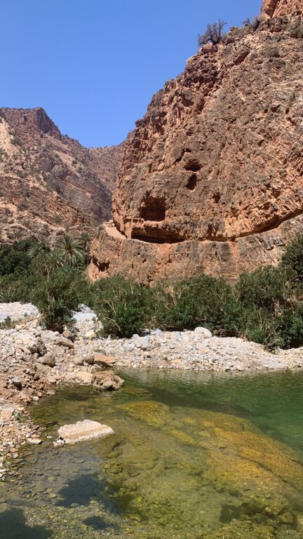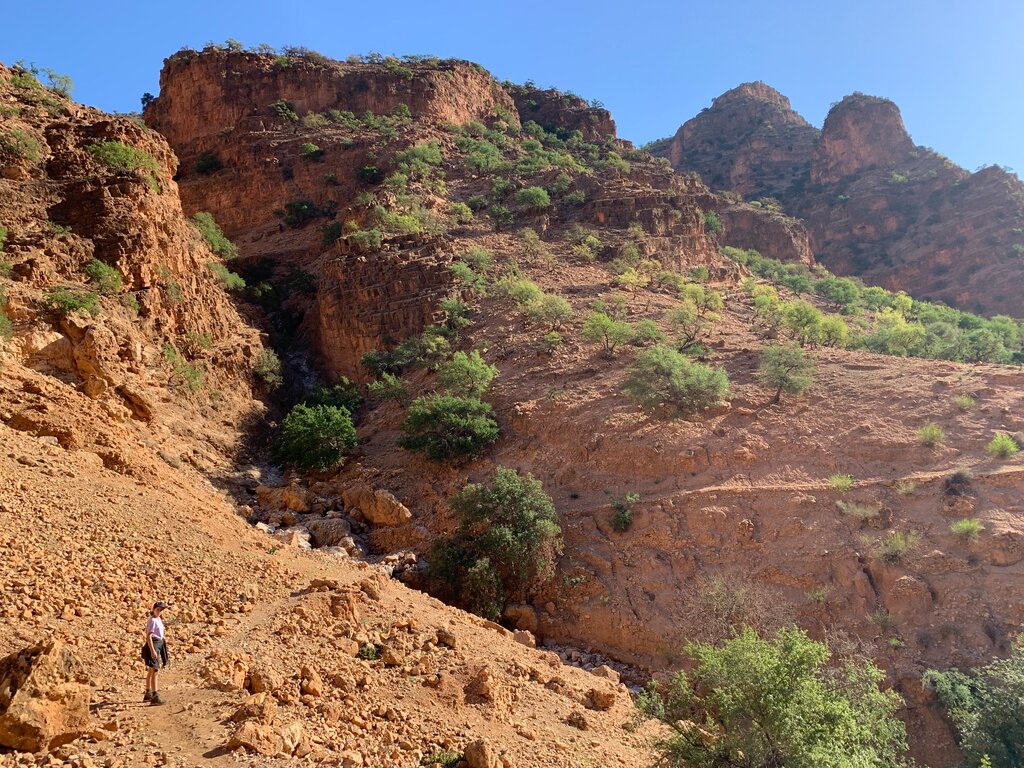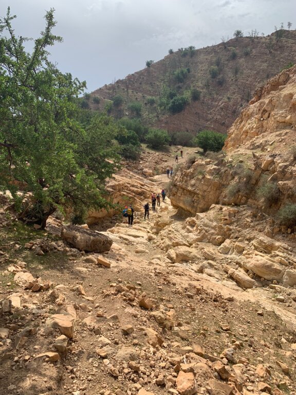 <Nach der Fahrt durch die steppenartige Ebene starten wir unseren Wandertag im Antiatlas. In einer beeindruckenden Schlucht begeben wir uns auf die Spuren der Berber. Während unserer Wanderung begegnen uns kleine Dörfer, umgeben von Arganien und begleitet von Ziegenherden, die unseren Pfad kreuzen. Unser Ziel ist eine Quelle, die der Schlucht ihre Fruchtbarkeit verleiht. Der Klang plätschernden Wassers und die üppige Vegetation vermitteln ein Gefühl von Leben und Vitalität in dieser abgeschiedenen Umgebung. Die Verbindung zu den Berbern und die Einblicke in ihre Lebensweise machen diese Wanderung zu einem unvergesslichen Erlebnis. Während wir durch die Schlucht des Antiatlas wandern, entdecken wir die Geheimnisse dieser faszinierenden Landschaft und erfahren, wie die Natur und die Menschen in harmonischem Einklang existieren.