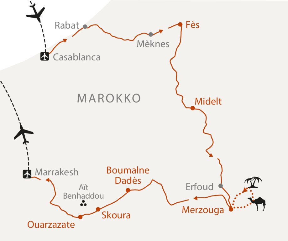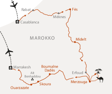 - Hinflug nach Casablanca und Rückflug von Marrakesch