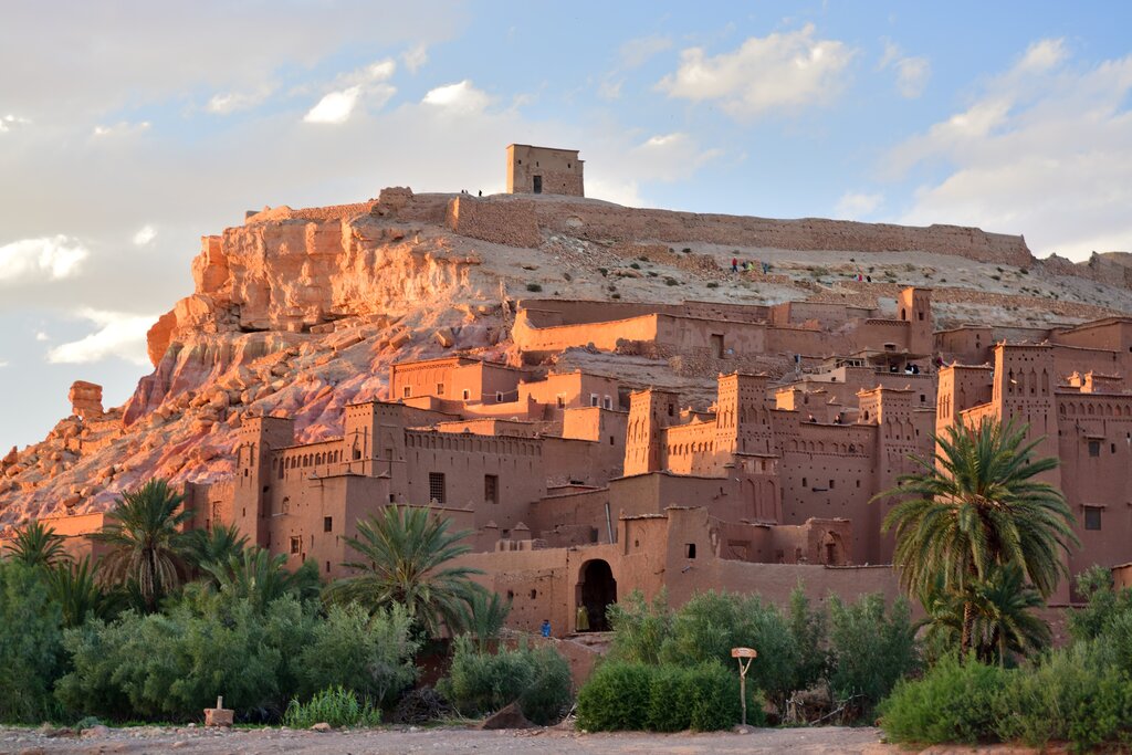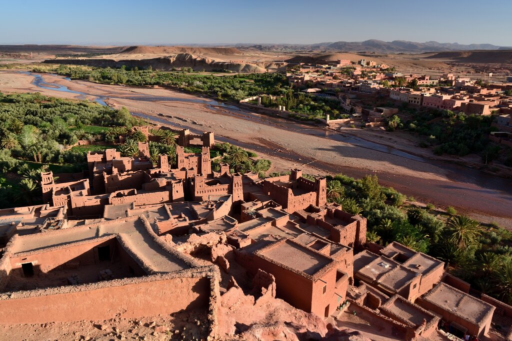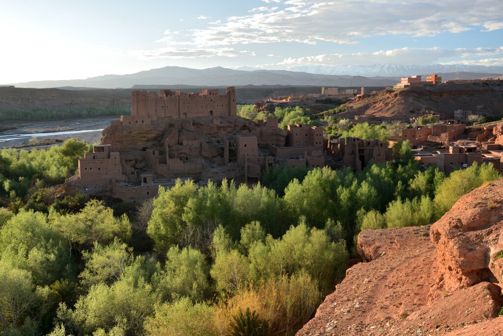 <Von Marrakech aus fahren wir heute über den Tizi-n-Tichka Pass (2260 Meter) durch den Hohen Atlas, der alten Heimat der Berber Richtung Drâa Tal, der größten Palmenoase Marokkos. In Ouarzazate besuchen Sie im Dorf „Ait Ben Haddou" eine der großartigsten Kasbahs in Marokko: Ein wunderschönes Beispiel traditioneller Lehmbau-Architektur der Berber, die seit 1987 zum UNESCO-Weltkulturerbe gehört. Die Kasbah diente in vielen bekannten Filmen als Kulisse.