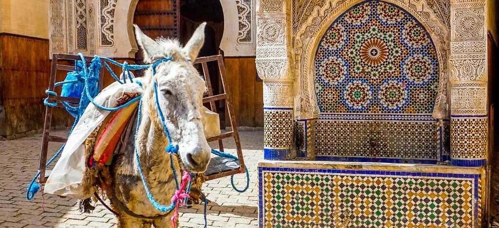 <Zieh dir bequeme Schuhe an, denn heute stehen eine Menge Geschichte und zwei weitere Königsstädte auf dem Programm. Zunächst besuchst du die Ruinen der Weltkulturerbe Stätte Volubilis. Das heutige Freilichtmuseum vermittelt einen Einblick in die Lebensweise vor etwa 2.000 Jahren. Besonders beeindruckend sind die gut erhaltenen und detailreichen Fußbodenmosaike. Nach dieser Zeitreise in die Antike geht es weiter in die Königsstadt Meknès. Der Beiname Versailles Marokkos ist nicht nur auf den gigantischen Palastbezirk zurückzuführen, sondern auch auf Sultan Moulay Ismail, der dem absolutistischen Selbstverständnis von Louis XIV. in nichts nachstand. Durch das mächtige Stadttor Bab Mansour gelangst du in die Medina mit dem zentralen Place El Hedim und dem alten jüdischen Viertel. Auf der anderen Seite des Tors befindet sich die Ville Impériale mit der Palastanlage des ehemaligen Sultans und seinem Mausoleum. Der weitläufige und reichlich verzierte Grabkomplex stellt eines der bedeutendsten Bauwerke von Meknès dar. Danach wird es Zeit, ein letztes Mal für heute in den Tourbus zu steigen. Am frühen Abend erreichst du schließlich Fès.