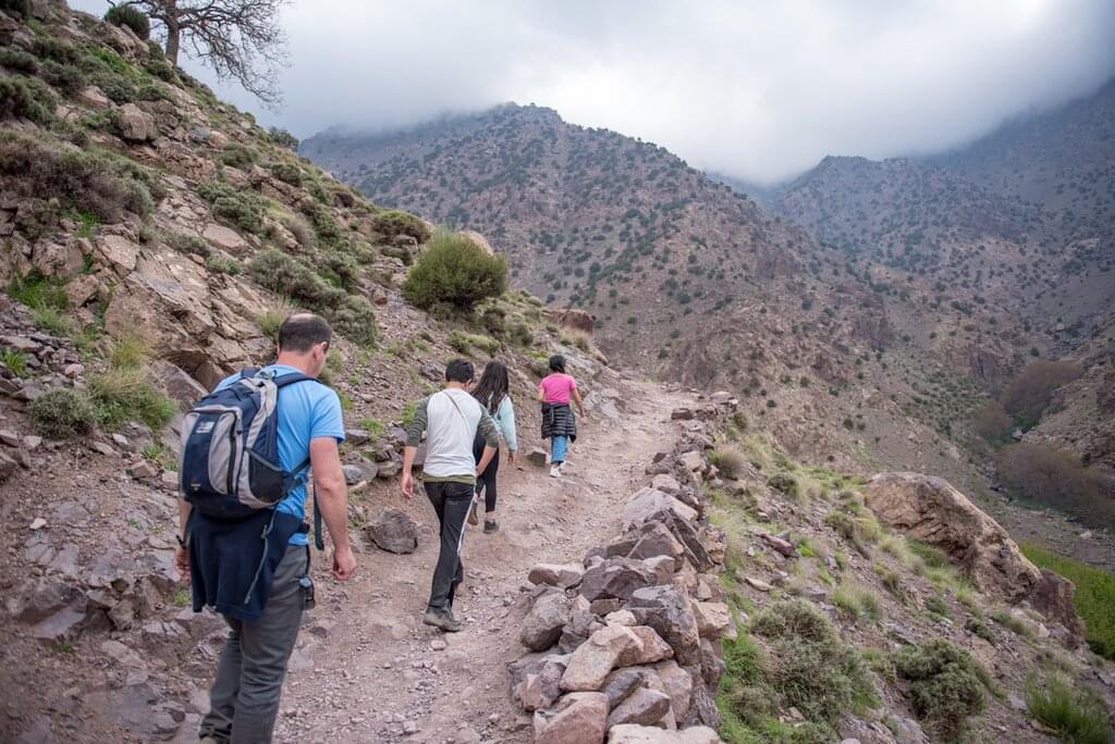 <Das heutige Abenteuer beginnt mit einer Fahrt über das Hohe Atlasgebirge zum Dorf Imlil - dem größten Dorf im Mizane-Tal. Hier lagerst du dein Hauptgepäck, bevor du mit deinem Tagesrucksack zu Fuß zum traditionellen Bergdorf Aroumd weitergehst. Wenn dir der Weg zu Fuß zu beschwerlich ist, kann dein Reiseleiter stattdessen einen Maultierritt für dich arrangieren (die Kinder werden den Maultierritt sicher lieben!). Das abgelegene Dorf Aroumd liegt auf einem Felsvorsprung und bietet einen herrlichen Blick auf das Hohe Atlasgebirge und eine einzigartige Gelegenheit, die traditionelle Kultur der Amazigh kennenzulernen. Die Nacht verbringst du in einer familiengeführten Bergunterkunft (Gite) in Aroumd. Umgeben vom Geruch des Holzofens und des Brotes lernst du die Gastfamilie kennen und genießt gemeinsam ein traditionelles Essen.