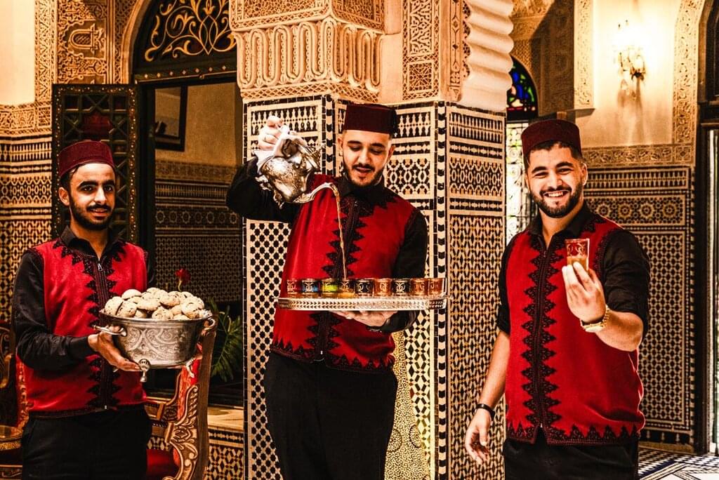 <Denke daran, deinen Wecker heute Morgen zu stellen, denn du wirst weit vor Sonnenaufgang aufstehen. Klettere auf eine nahegelegene Sanddüne, um den Sonnenaufgang zu erleben - dieser Anblick ist das frühe Aufstehen wert - und fahre dann zurück zum Camp, um zu frühstücken, den Rest deiner Ausrüstung zu holen und nach Ait Benhaddou zu fahren. Bei der Tawesna Association bekommst du den besten Pfefferminztee der Welt. Alle Gewinne kommen den Frauenprojekten im Dorf Ait Benhaddou zugute. Diese Erfahrung in dem inklusiven Teehaus für Frauen ist mehr als nur eine Tasse Tee - es geht darum, eine Kultur zu entdecken und einen Beitrag zur wirtschaftlichen Eingliederung von Frauen und zum verantwortungsvollen Tourismus zu leisten. Anschließend erkundest du die mittelalterliche Lehmziegelstadt Ait Benhaddou. Wenn du dich fragst, warum sie dir bekannt vorkommt, liegt das wahrscheinlich daran, dass du sie schon auf der Leinwand gesehen hast. Schlendere durch die vielen alten Straßen und klettere zur Festung hinauf, um einen Blick über die Altstadt zu werfen. Gegen eine kleine Gebühr kannst du auch eines der interessantesten alten Häuser in der Kasbah besichtigen. Die Nacht verbringst du direkt vor den Mauern.