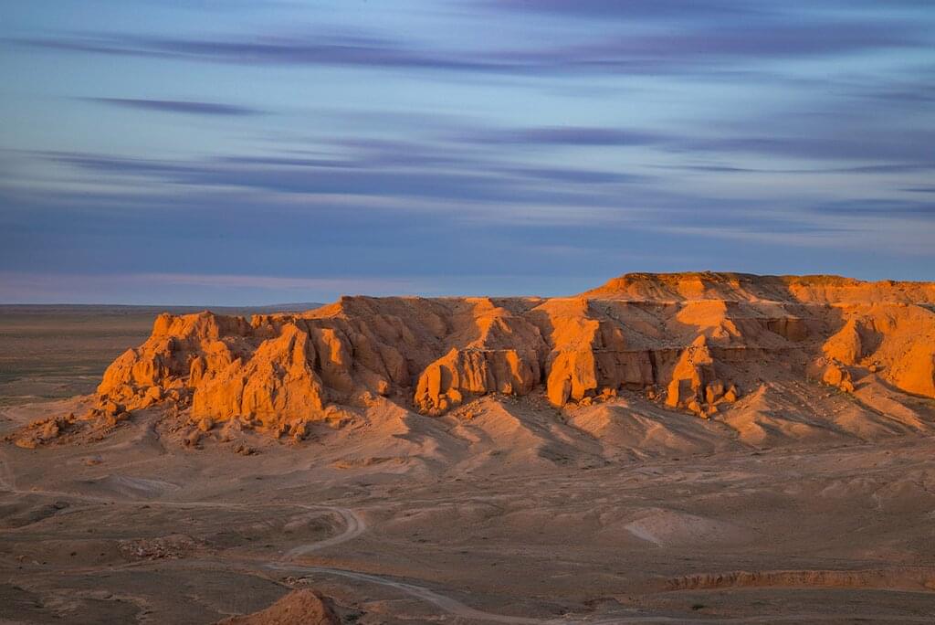 <Tsagaan Suvarga ist dein heutiges Ziel. Die Region, die auch als "weißer Stupa" bekannt ist, ist für ihre Felsformationen bekannt, die aus verschiedenen Erzen bestehen. Wenn das Gestein Sauerstoff ausgesetzt wird, färbt es sich in verschiedenen Rosa-, Rot- und Orangetönen. Die Klippen sind bis zu 10 Millionen Jahre alt, wobei die verschiedenen Farbschichten auf unterschiedliche Zeiten in der Geschichte des Gesteins hinweisen. Nach dem Mittagessen kannst du zu den nahegelegenen Höhlen wandern und sie erkunden. Du übernachtest heute wieder im Ger Camp.