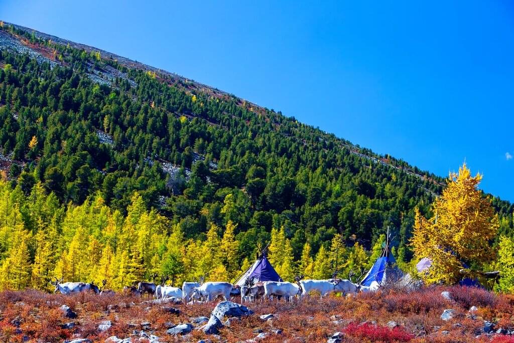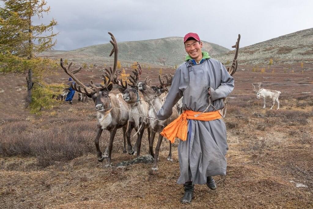 Reise tief in die Taiga der nördlichen Mongolei, um auf dieser 14-tägigen Reise den Spuren der Tsaatan-Rentierhirten zu folgen. Bestaune die majestätische Dschingis-Khan-Statue außerhalb von Ulaanbaatar, genieße ein mongolisches BBQ mit den Darkhad-Nomaden in ihrem Familienger, komm den uralten bronzezeitlichen Hirschsteinmonumenten im Uushig-Tal nahe, genieße die majestätische Landschaft des Khoridol-Saridag-Bergs und des Khuvsgul-Sees und das Wichtigste: Erlebe das Leben der Tsaatan-Rentierzüchter in ihrem Camp, das nur zu Fuß erreichbar ist. Nimm an ihrer täglichen Arbeit teil, lerne ihre Weisheit kennen, mit dem Fluss der Natur zu gehen, und genieße diese herausfordernde, aber transformierende Erfahrung, fernab der modernen Zivilisation zu sein.